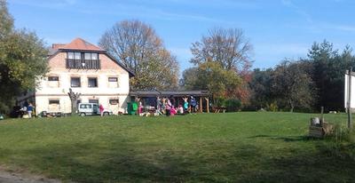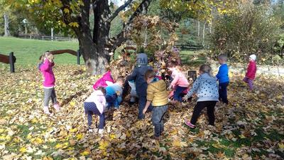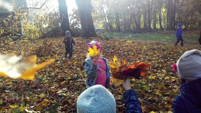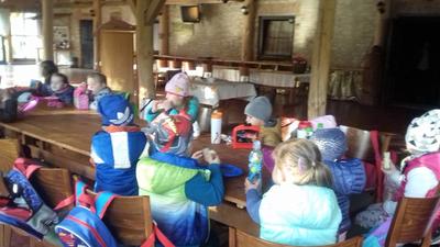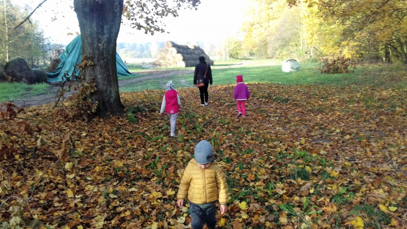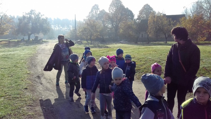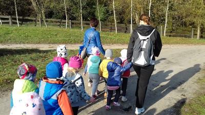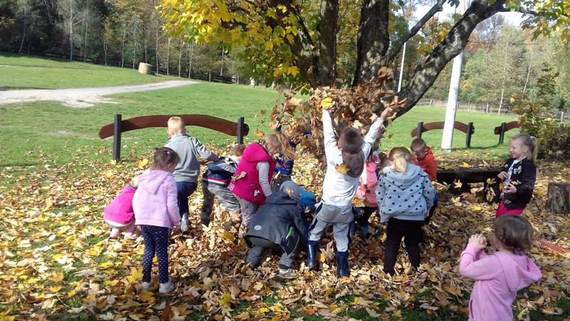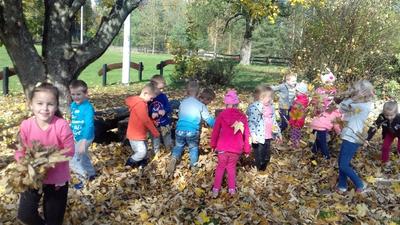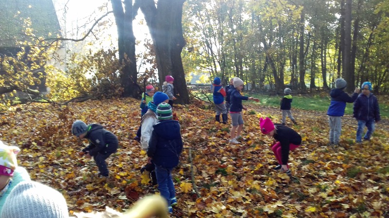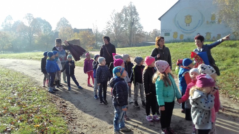 Piękna pogoda stała się okazją do zorganizowania wycieczki do Krzętowa dla grup przedszkolnych. W pięknym przyrodniczo otoczeniu przedszkolaki podążyły śladami jesieni., aby obserwować zmiany w nim zachodzące. Podczas spaceru wokół zabytkowego parku dowiedziały się wielu ciekawostek związanych z zabarwieniem liści, przyczyną zmiany ich kolorytu oraz opadanie. Poznały również różne gatunki drzew. Przedszkolaki zbierały liście, które następnie zostały użyte do przeprowadzenia zajęć plastycznych na terenie Gospodarstwa Agroturystycznego.