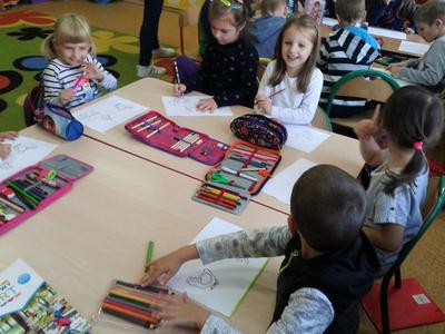 - wspólnie z nauczycielem oddziału przedszkolnego 3 i 4-latków przygotowała inscenizację do utworu Jerzego Faliszka pt. „Bajka o uśmiechu” , którą wystawili uczniowie klasy VI na spotkaniu z okazj Dnia Uśmiechu i Życzliwości