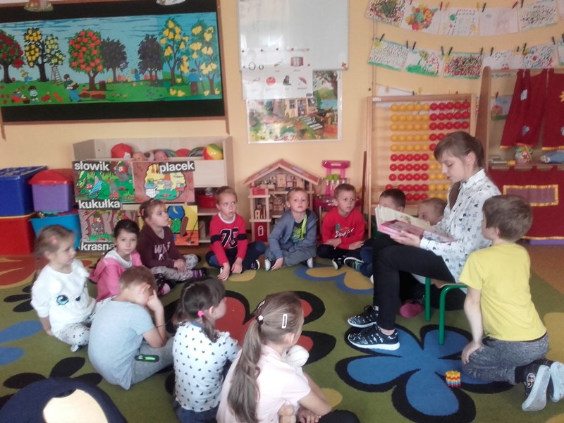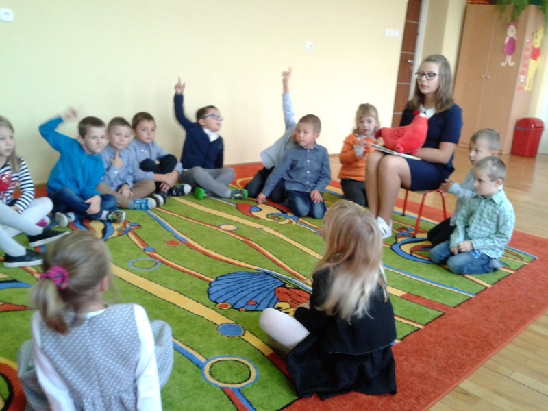 Uczniowie z klasy szóstej czytali raz w tygodniu przedszkolakom i „zerówce” baśnie i legendy. Dzieci z wielkim zainteresowaniem słuchały czytanych utworów. Poprawnie odpowiadały na pytania. Swoje wrażenia oddawały w twórczości plastycznej, malując ilustracje do wysłuchanych utworów.