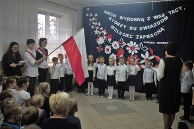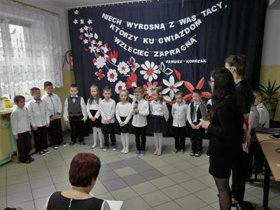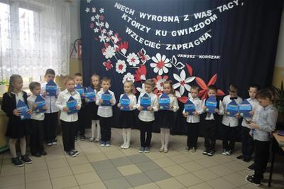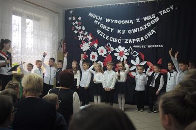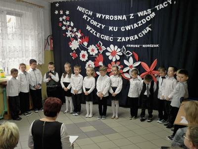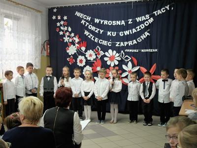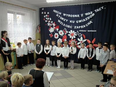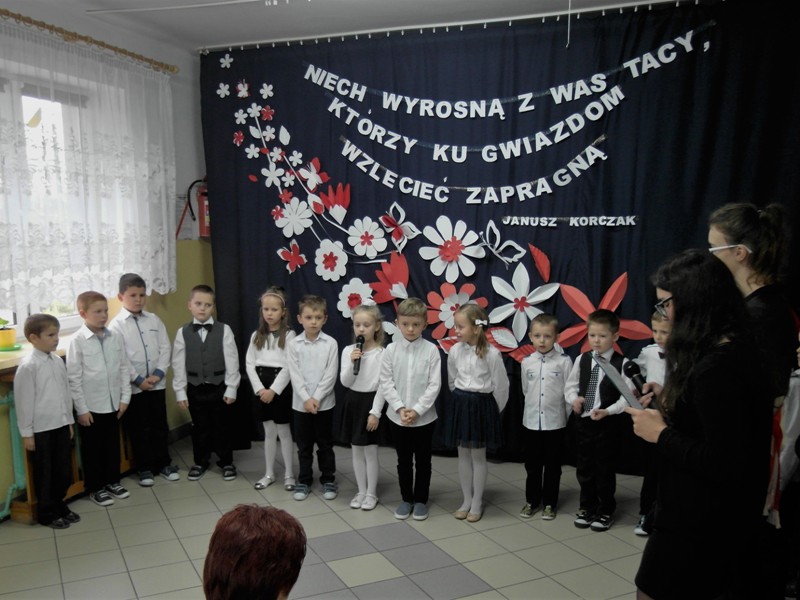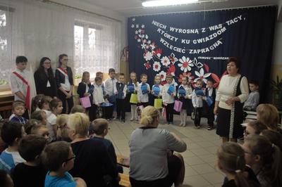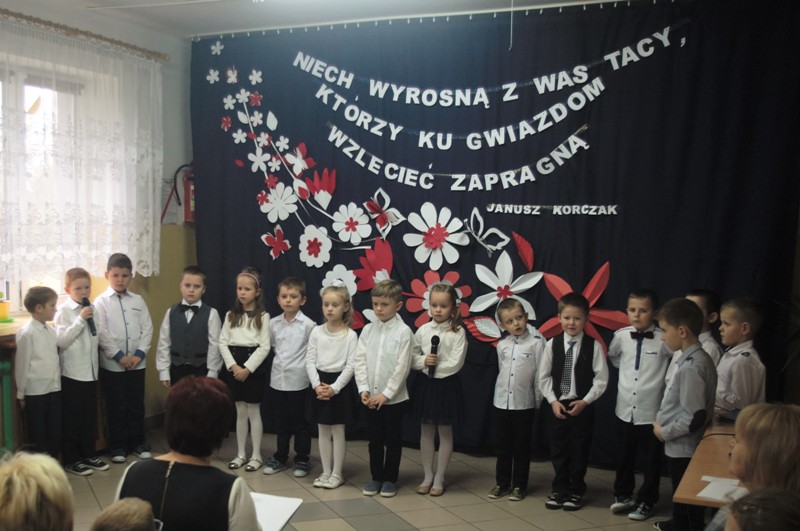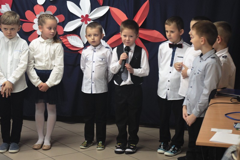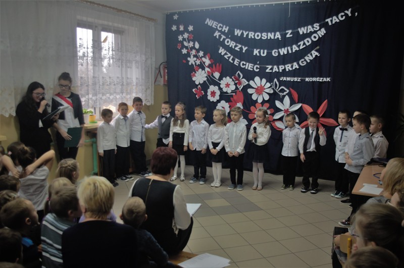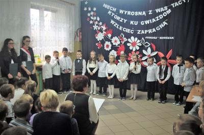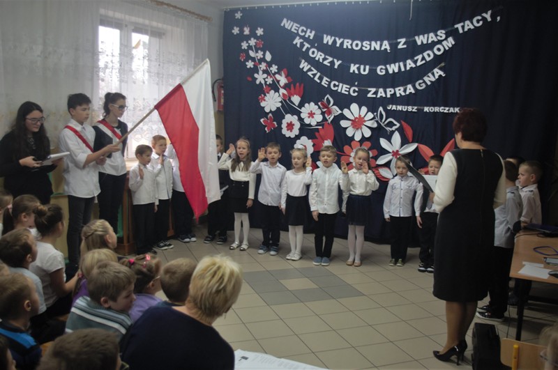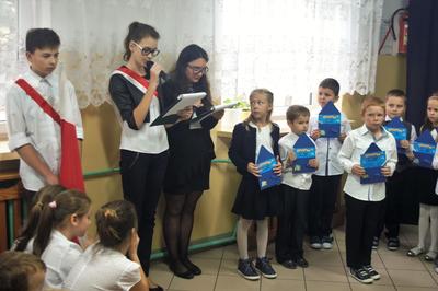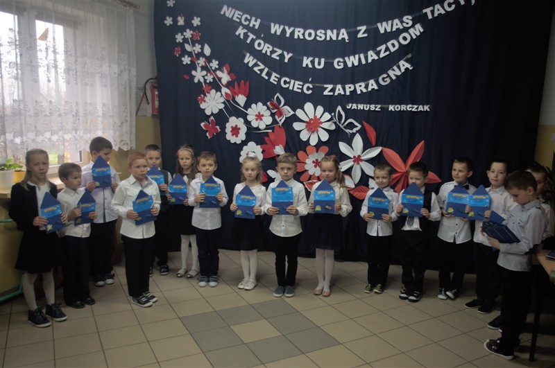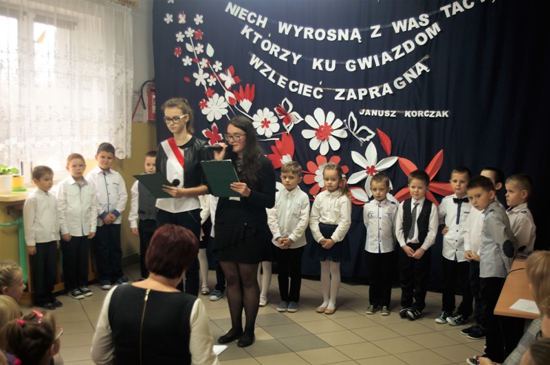 8 listopada 17 dzieci z klasy I zostało formalnie przyjętych do grona uczniów naszej szkoły. Ślubowanie uczniów klasy I jest jedną z najważniejszych uroczystości w kalendarzu każdej szkoły. Uroczystość rozpoczęła się od występu słowno-muzycznego, który przygotowany został przez wychowawcę klasy, Panią Barbarę Szymczyk. Prezentowane wiersze i piosenki związane były ztemantami bliskimi dzieciom. Dotyczyły przyjaźni, koleżeństwa, miłości do kraju ojczystego, bezpiecznego zachowania sie w szkole i na drodze. Dzieci rozwiązywały zadania i odpowiadały na zagadki przygotowane przez Koleżanki z Samorządu Uczniowskiego.