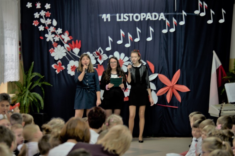 Z tej okazji 10 listopada w naszej szkole odbył się uroczysty apel, który był lekcją historii i patriotyzmu. Pamięć minionych dni i dumę z odzyskanej niepodległości przywołały wiersze i pieśni o tematyce patriotycznej.