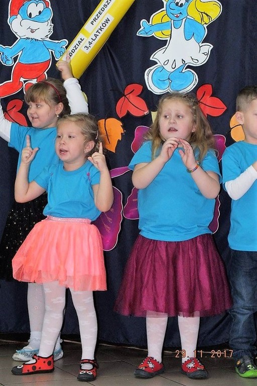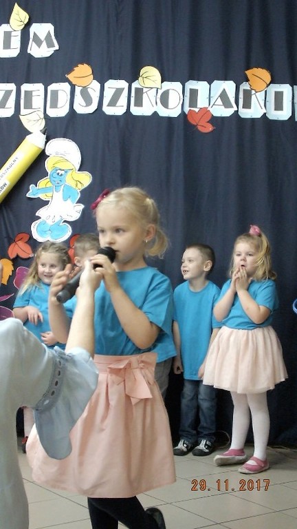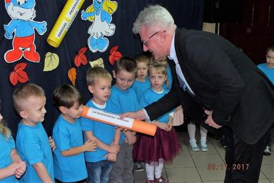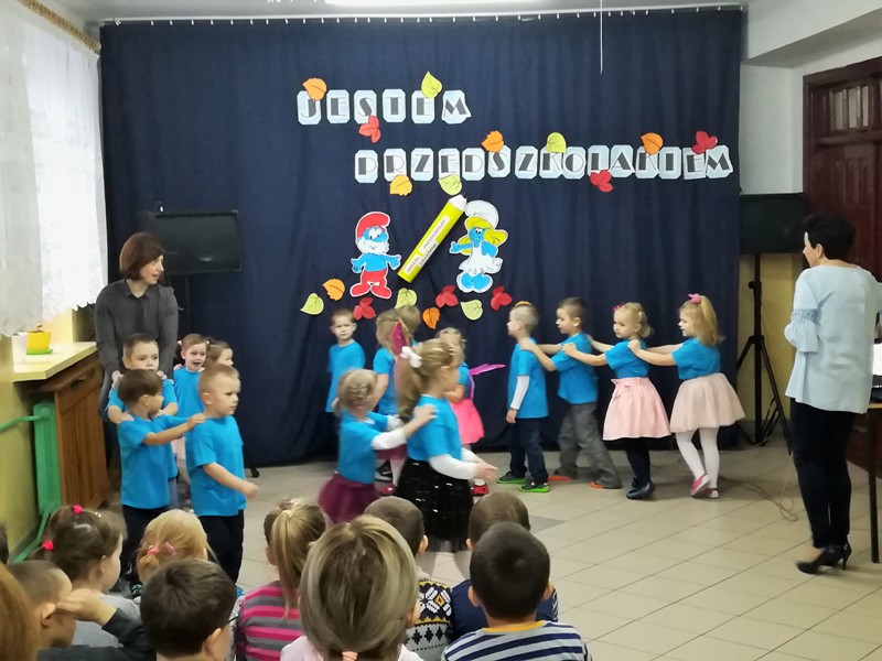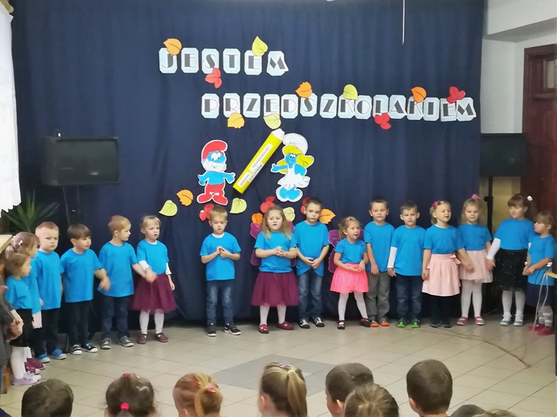 Czas adaptacji maluchy mają już za sobą, czego potwierdzeniem była uroczystość „Pasowania na Przedszkolaka”. Był to szczególny dzień dla dzieci, które po raz pierwszy we wrześniu przekroczyły próg przedszkola oraz ich pierwszy publiczny występ na który zostali zaproszeni Rodzice, Dyrektor Szkoły Pan Leszek Wróblewski oraz grupa 5-latków z Wychowawcą. Podczas uroczystości dzieci zaprezentowały wiersze i piosenki związane tematycznie z przedszkolem, pobytem w nim i umiejętnościami, które tam zdobywają. Zawarta w nich była radość z bycia przedszkolakiem czego dowodem był występ dzieci. Swoją postawą, zaangażowaniem, odwagą udowodnili, że w pełni zasługują na odznaczenie.
