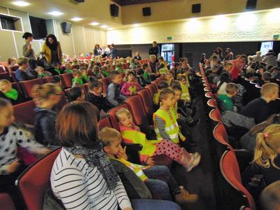 W poniedziałek dzieci z oddziału przedszkolnego 3, 4-latków oraz z „zerówki” wybrały się z opiekunami na wycieczkę do MDK w Radomsku, aby obejrzeć spektakl pt. „Tomcio Paluszek” w wykonaniu aktorów Teatru Lalek Rabcio z Rabki. Spektakl ten adresowany był do najmłodszej widowni i przedstawiony w technice sztuki lalkarskiej.