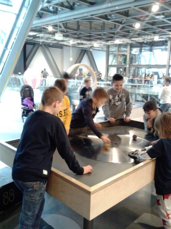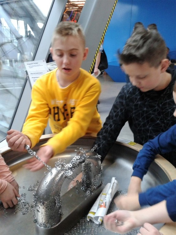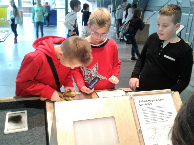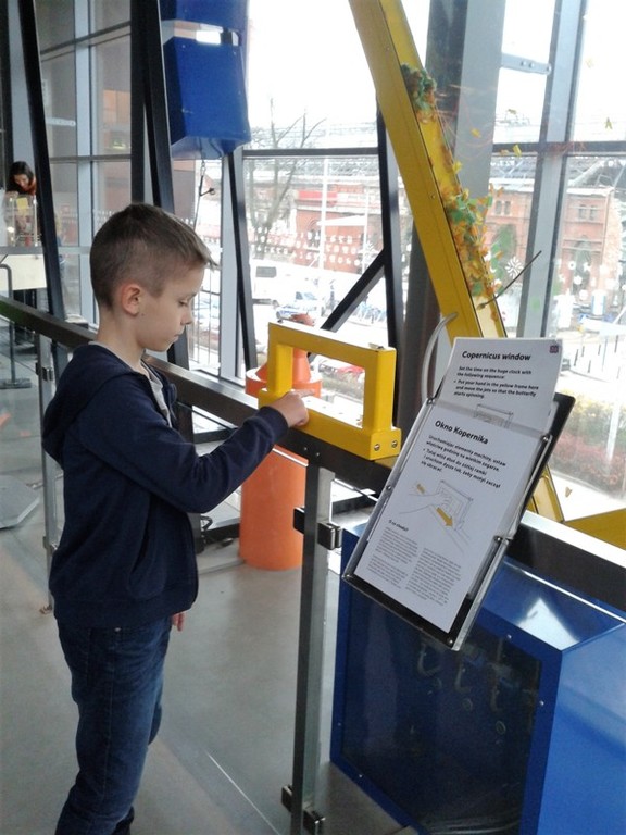 Kolejnym punktem wycieczki była lekcja przyrody w Centrum Nauki Kopernik. Centrum Nauki to interaktywna wystawa, na której znajduje się około 340 eksponatów w sześciu galeriach tematycznych oraz Teatr Robotyczny, Park Odkrywców i planetarium. Są tam stanowiska doświadczalne i narzędzia pozwalające na samodzielne poszerzanie wiedzy i wyjaśnianie wielu zjawisk. Uczniowie mogli nie tylko oglądać, ale również przeprowadzać eksperymenty na poszczególnych stanowiskach. Dzięki temu dotychczas skomplikowane dla nich prawa przyrody stały się bardziej zrozumiałe a uczniowie mogli przekonać się, że nauka może być wciągającą i fascynującą przygodę. Czas w tym miejscu minął za szybko– z pewnością wrócimy tam jeszcze nie raz.