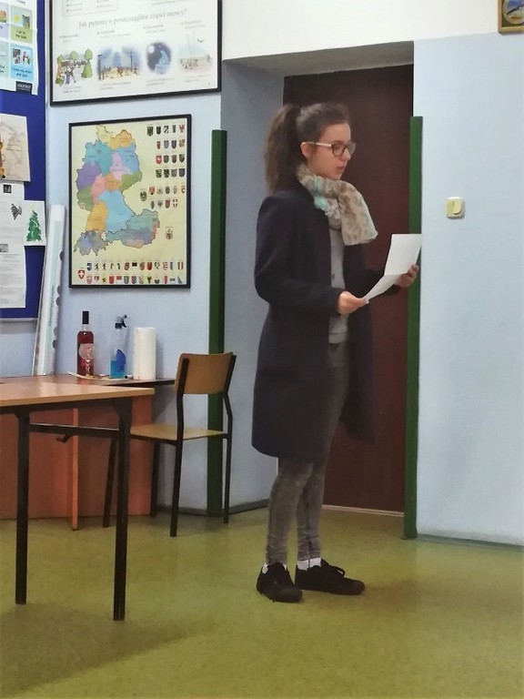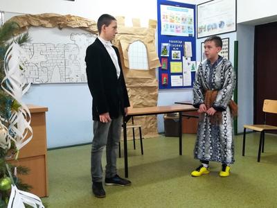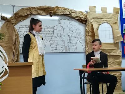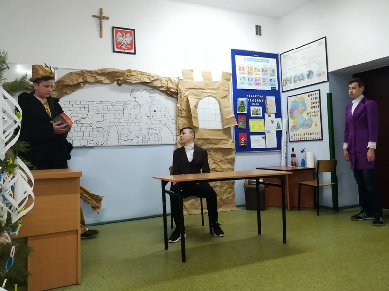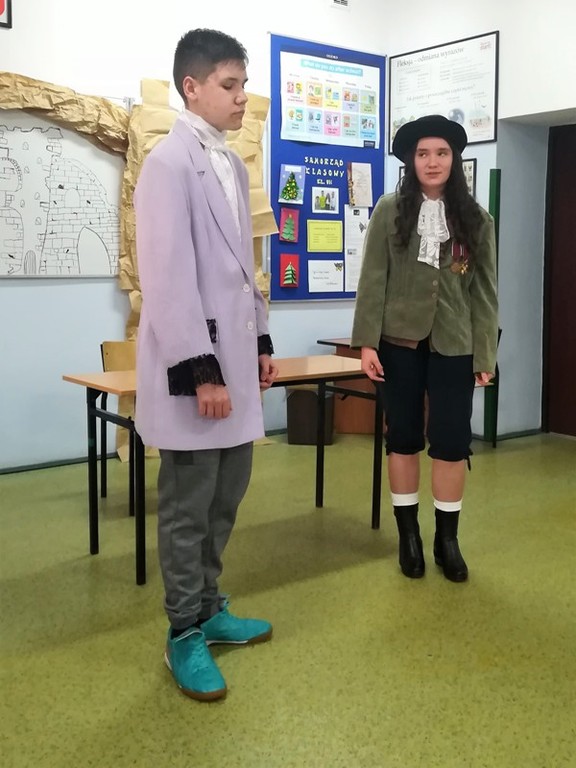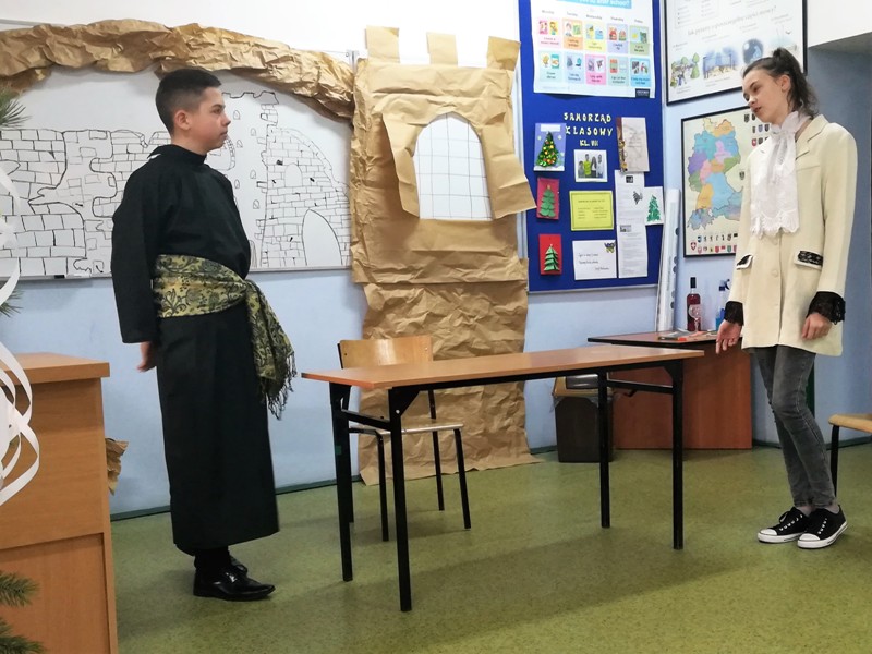 3 stycznia lekcji języka polskiego uczniowie klasy 7 przedstawiali "Zemstę" Aleksandra Fredry.