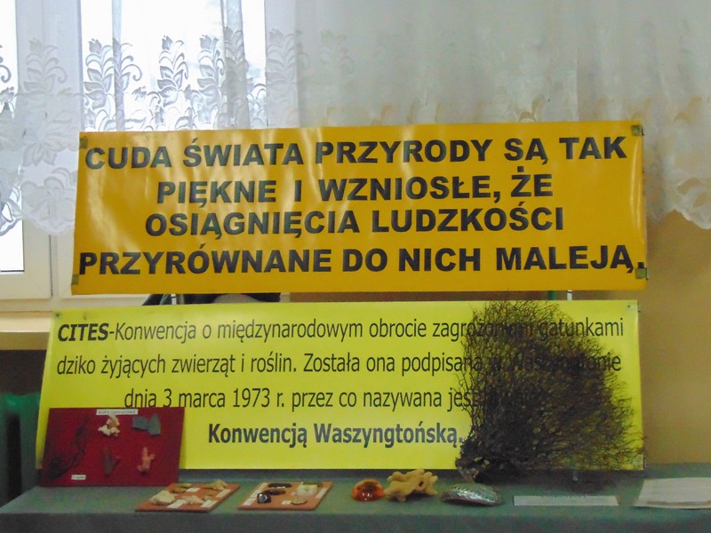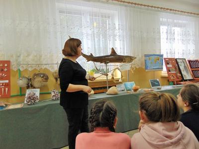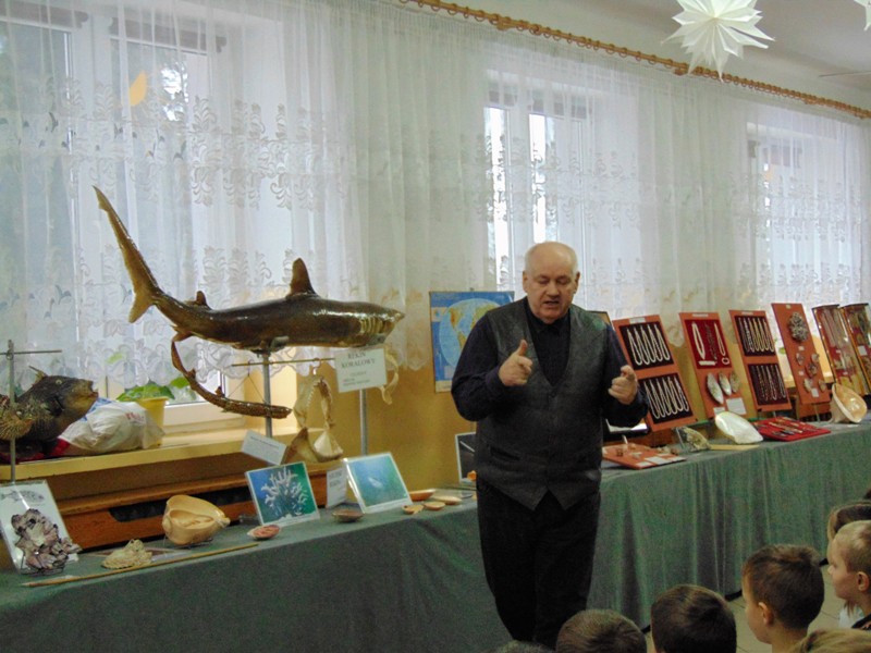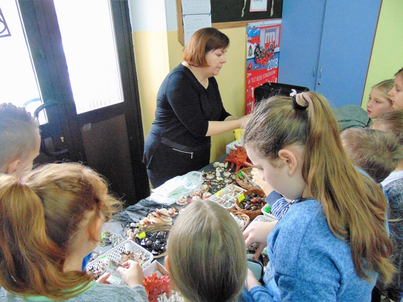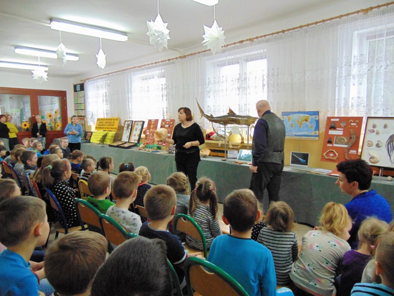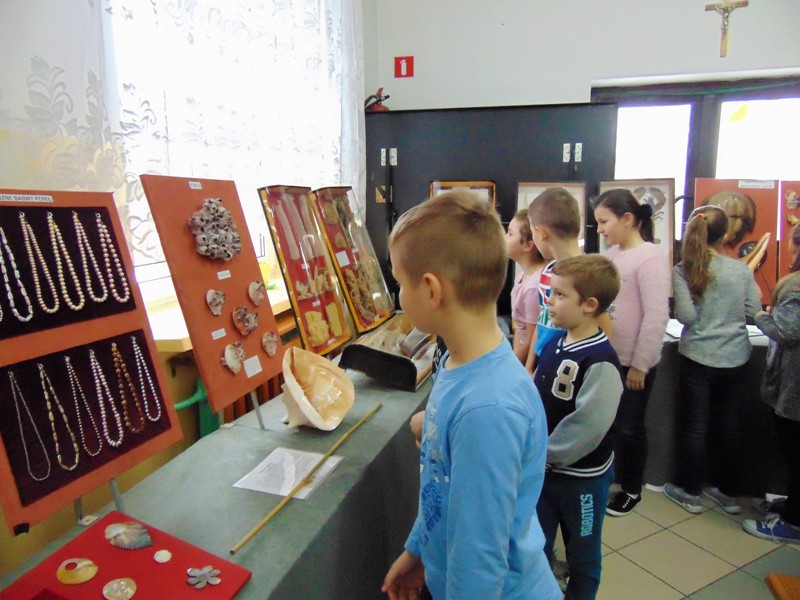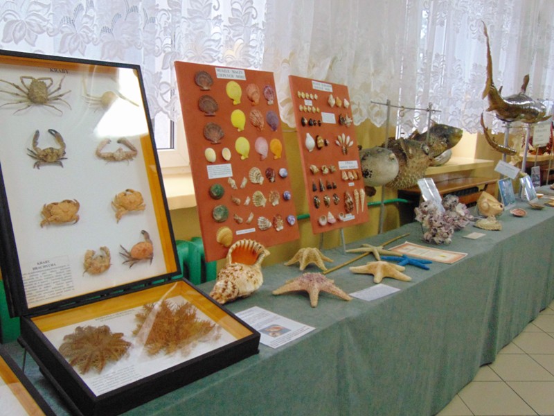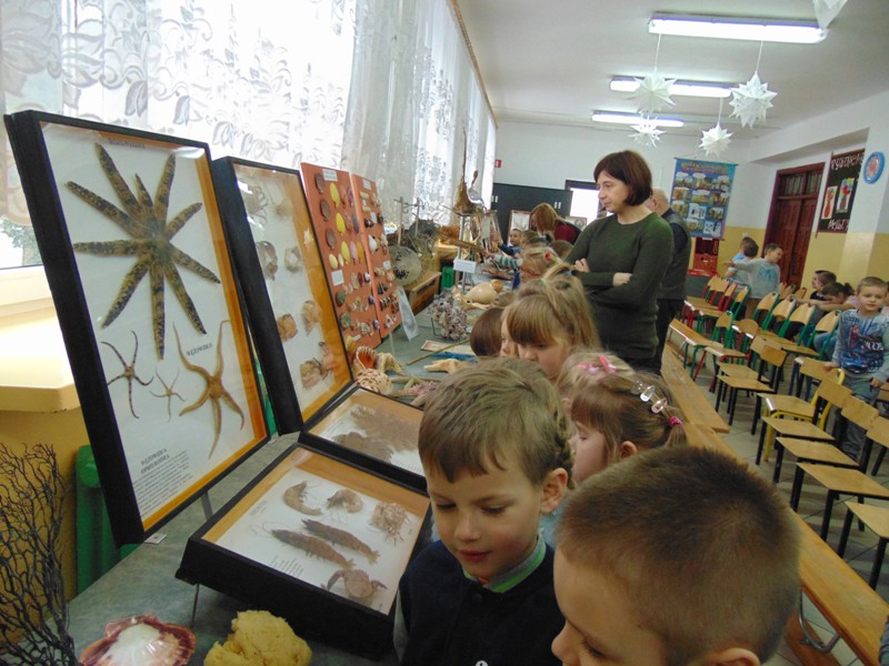 Wszyscy podziwiali niesamowite okazy mięczaków, rekina koralowego i plamistego, szczęki rekina ludojada, egzotyczną kolekcję ryb (najeżki, ryby tygrysie) zamieszkujące głębiny oceaniczne, ciekawe okazy rozgwiazd, gąbek, jeżowców i ślimaków oraz należącego do skorupiaków królewskiego kraba. Na wystawie pojawił się największy ślimak na świecie syrnix oraz muszla największego małża. Nie zabrakło skarbu polskiego morza czyli bursztynu. Uczniowie poznali także wiele ciekawostek dotyczących podwodnego świata. Dowiedzieli się choćby tego jak powstają perły, że muszelki to najstarsze pieniądze na świecie, że bursztyn to skarb tylko naszego Bałtyku, jak wygląda najmniejszy rekin świata, jak ogromne mogą być muszle. Dużo emocji wzbudziła możliwość dotknięcia niektórych okazów, szczególnie zębów ryby piły.