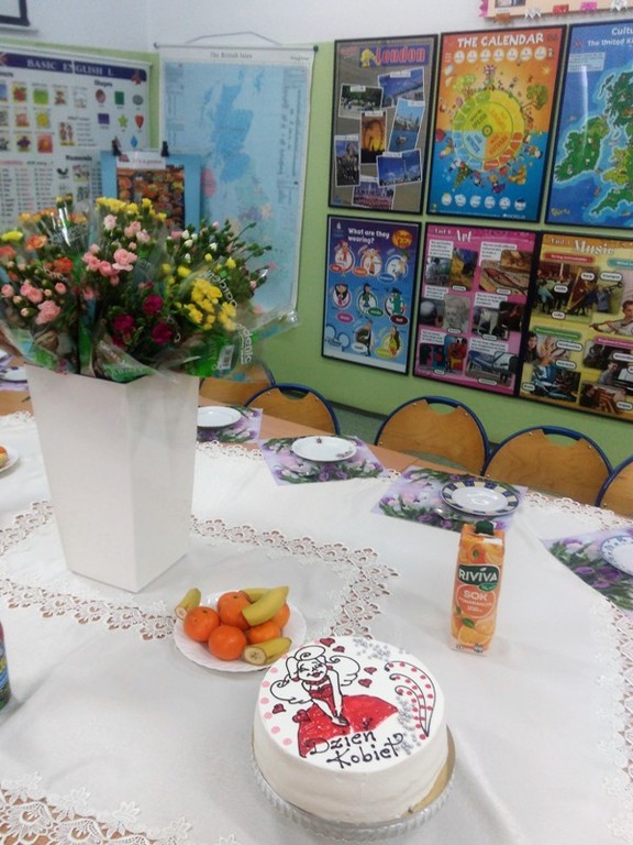 W pozostałych klasach Święto Kobiet miało równie uroczysty charakter. Chłopcy nie zapomnieli o swoich koleżankach. Były więc życzenia, kwiaty, upominki, poczęstunek. Nie zapomnieli także o wszystkich Paniach pracujących w naszej szkole.
