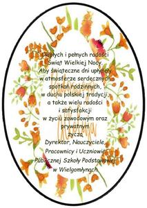 Życzenia świąteczne Zdjęcia Zobacz również 14 marca - Konkurs recytatorski 18 marca – Wystawa w ramach Gminnego Kiermaszu... 27 marca - Duży sukces naszej uczennicy Życzenia świąteczne 13 kwietnia- Gminny Dzień Seniora 16 – 17 kwietnia - Wycieczka do Krakowa, Wieliczki... 28 marca 2018 Aktualności Wydrukuj Udostępnij Wyświetlono: 534