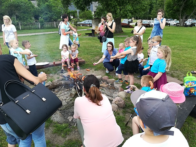 Dzieci wręczyły rodzicom własnoręcznie wykonane upominki. Po zakończeniu części artystycznej wszyscy zostali zaproszeni na słodki poczęstunek. Radosna atmosfera towarzyszyła spotkaniu. Na twarzach dzieci i ich rodziców widoczny był promienny uśmiech. Wszyscy spędzili miło czas na wspólnych zabawach oraz rozmowach przy ognisku. Bardzo dziękujemy wszystkim , którzy przyczynili się swoim zaangażowanie w przygotowanie pikniku, za miłą, serdeczne atmosferę i chwile wzruszenia.