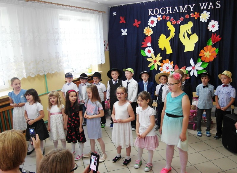 25 maja w klasie 0 odbyło się spotkanie z okazji Dnia Mamy i Taty. Zaproszeni rodzice podziwiali swoje pociechy w przedstawieniu „Dzień Mamy i Taty na wesoło”. Dziewczynki wcieliły się w rolę mamusi, a chłopcy-tatusia i prowadziły rozmowy na ławeczce o swoich „rodzinach”. Wesołe scenki przeplatane były piosenkami i tańcem. Na zakończenie części artystycznej dzieci zaprosiły mamusie do tańca do piosenki „Ja cię pocałuję” , a tatusiów do piosenki „Kiedy tata humor ma”. Za piękny taniec każda mamusia otrzymała pamiątkowy dyplom, a tatuś- medal SUPERTATA . Dzieci wręczyły rodzicom własnoręcznie wykonane kwiaty dla mamy, a laurki dla taty. Dobre humory dopisywały podczas słodkiego poczęstunku.
