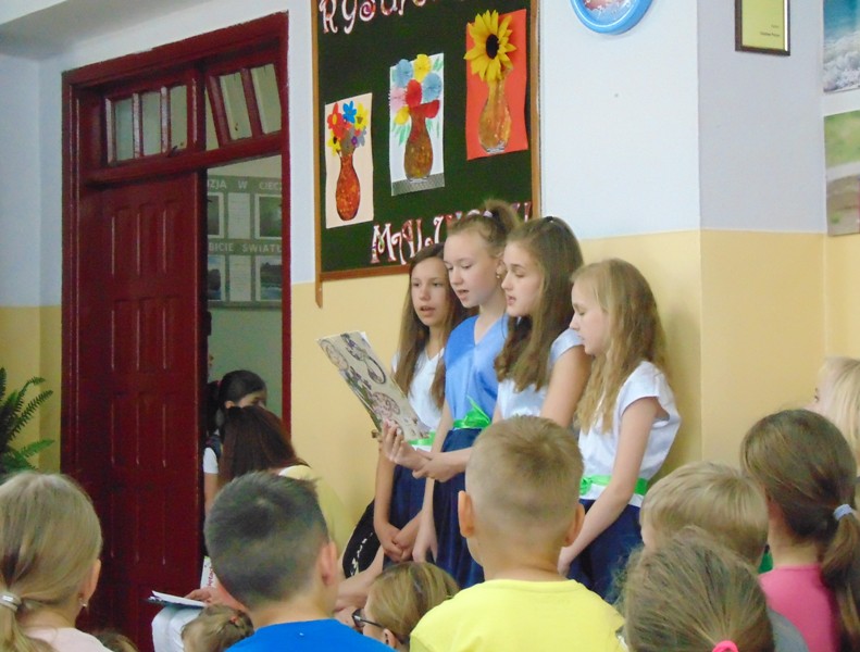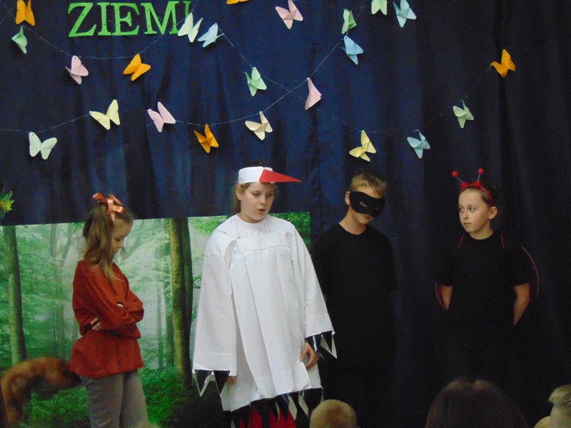 W dniu 16 maja uczniowie klasy 4a zaprezentowali scenkę rodzajową pt. „Leśny piknik”. Wybrana tematyka związana była z promowaniem działań na rzecz walki z zanieczyszczeniem środowiska i uświadomieniem dzieciom, jak wielki problem stanowi zaśmiecanie Ziemi plastikowymi odpadkami. Atutem przedstawienia była scenografia i kostiumy małych aktorów. Wprowadzeniem i podsumowaniem spektaklu były piosenki pt. „Leśna edukacja” i „Na polanie” w wykonaniu chóru uczennic klasy 5.