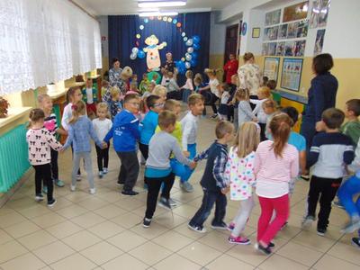 Święto to o zasięgu ogólnopolskim już na stałe wpisało się w nasz kalendarz uroczystości przedszkolnych. W tym wyjątkowym dniu czeka zawsze na przedszkolaków wiele atrakcji, które bawią, uczą i rozwijają. Dzieci czerpią radość ze wspólnej zabawy , a co najważniejsze z bycia przedszkolakiem. Tegoroczne święto wypełnione było mnóstwem niespodzianek. Dzieci brały udział w poszukiwaniu skrzyni skarbów, w pokazie iluzji, w grach i konkurencjach sportowych. Salę wypełnił kuleczkowy deszcz kolorów. Słychać było śmiech i radość dzieci skaczących w rytm muzyki wraz z Minionkiem. Moc atrakcji zapewniła Pani animatorka, która poprowadziła zabawy dla przedszkolaków. Dziękujemy rodzicom dzieci z oddziałów przedszkolnych za zaangażowanie w pomoc przy organizacji Dnia Przedszkolaka i przygotowanie słodkiego poczęstunków dla dzieci.