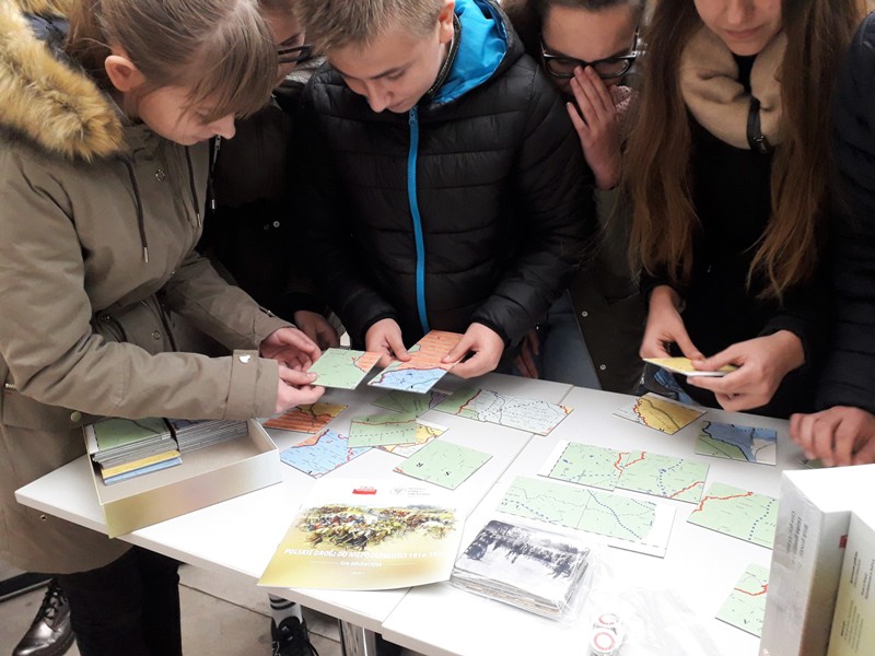 29 października uczniowie klas: 7 i 8 uczestniczyli w seminarium „Polskie drogi do niepodległości” w Centrum Idei „Ku Demokracji” w Piotrkowie Trybunalskim. Uczestnicy spotkania wysłuchali występu Scholii Dziecięco-Młodzieżowej z Moszczenicy w programie pieśni i piosenek „Moja niepodległa”. Uczestniczyli również w warsztatach „Polskie drogi do niepodległości” prowadzonych przez pracownika IPN Oddział Łódź Pana Artura Ossowskiego. Poznawali historię swojej ojczyzny w oparciu o grę Memory – twórcy niepodległości. Wspólnie z chórem śpiewali popularne piosenki patriotyczne. Ponadto uczniowie otrzymali dla szkoły zestaw 4 gier dydaktycznych „Polskie drogi do niepodległości”. Uczestnicy warsztatów zorganizują dla swoich kolegów z klas 6-8 szkolną grę dydaktyczną sprawdzającą wiedzę dzieci z historii Polski w latach 1914-1924.