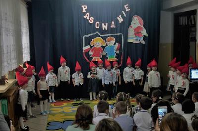 Grupa 23 przedszkolaków złożyła przyrzeczenie w obecności Dyrektora Szkoły, Wychowawcy, rodziców i zaproszonych gości z klasy O. W sposób symboliczny poprzez pasowanie ołówkiem dzieci zostały włączona w poczet przedszkolaków naszej szkoły i otrzymały pamiątkowe dyplomy. Brawa, uśmiech, radość w oczach rodziców świadczyły o ty, jak bardzo dumni są oni ze swoich pociech. Gratulujemy dzieciom pięknego występu, wzorowej postawy przedszkolaka i życzymy wielu sukcesów na dalszej drodze przedszkolnej, a potem szkolnej.