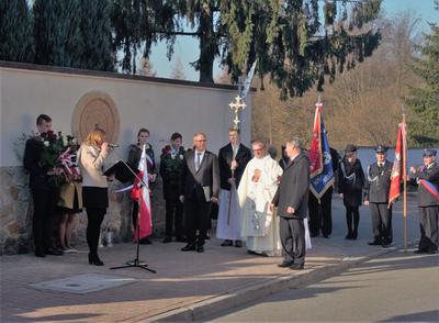 Po mszy o godzinie 12:00 odbyło się uroczyste odśpiewanie Mazurka Dąbrowskiego w ramach akcji "Niepodległa do Hymnu". Następnie na murze kościelnym została odsłonięta i poświęcona pamiątkowa tablica upamiętniająca 100-lecie Odzyskania Niepodległości. Nawiązuje ona formą do znajdującej się obok tablicy z 1928 roku.