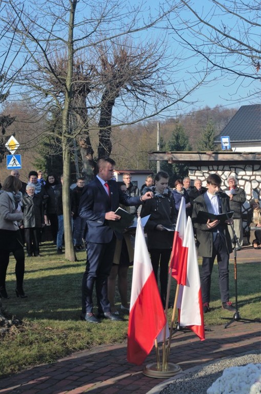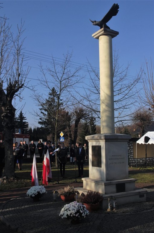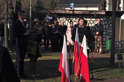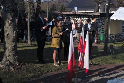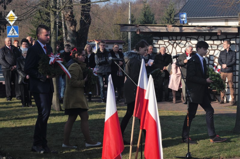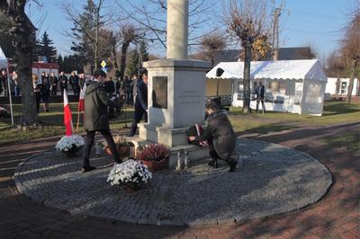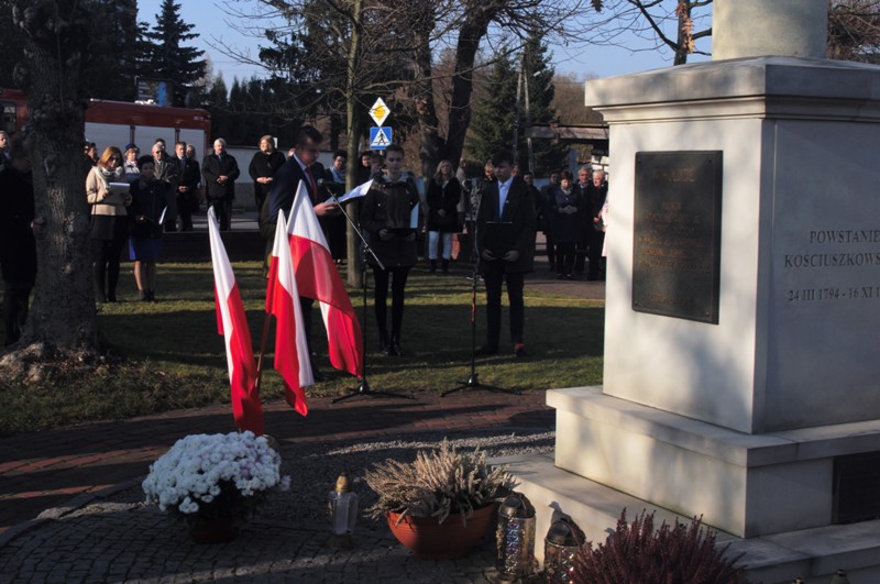 Dalszy ciąg uroczystości miał miejsce w przy pomniku upamiętniającym zrywy niepodległościowe w parku, gdzie uczniowie klasy VIII z wychowawcą klasy Panią Zofią Witaszczyk odczytali Apel Pamięci, a następnie delegacje złożyły wiązanki i zapaliły znicze.