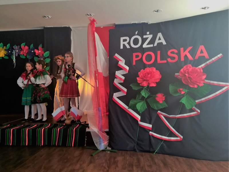 Po tej części zebrani mieszkańcy gminy udali się do Gminnego Ośrodka Kultury i Sportu, aby obejrzeć uczniów Publicznej Szkoły w Wielgomłynach w części artystycznej pt. „Róża-Polska”, opartej na dramacie narodowym „Wesele” Stanisława Wyspiańskiego. Przedstawienie i scenografię przygotowali nauczyciele naszej szkoły: Pani Elżbieta Olczyk, Pani Agnieszka Wróblewska, Pani Ewa Bedlechowicz i Pani Małgorzata Dyktyńska. Publiczność nagrodziła wzruszający występ uczniów brawami na stojąco.