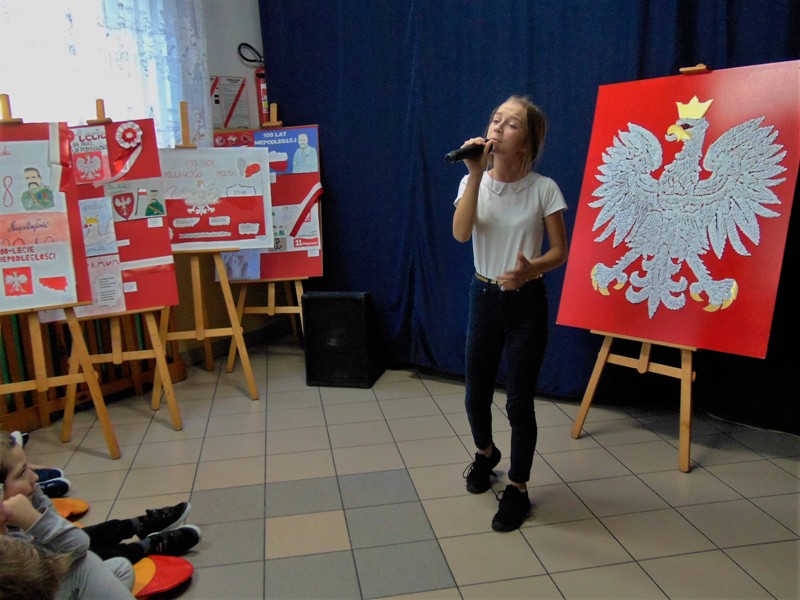 Na uwagę zasługuje też wykonanie przez Joannę Ciesielską z kl. VI wzruszającej pieśni pt. ,,Białe róże” oraz utwór ,,Maki” zaśpiewany z podziałem na role przez uczennice z kl. V b: Oliwię Kantorosińską i Wiktorią Jędrzejczyk. Nikola Kardas z klasy VI zaśpiewała piosenkę pt. „Póki Polska żyje w nas”, którą wykonała 11 listopada podczas występu uczniów naszej szkoły dla społeczności gminnej na uroczystości 100-lecia Odzyskania Niepodległości.
