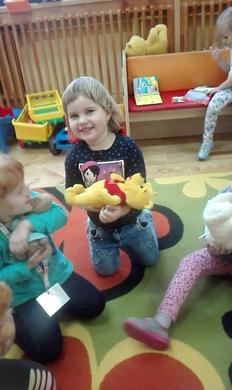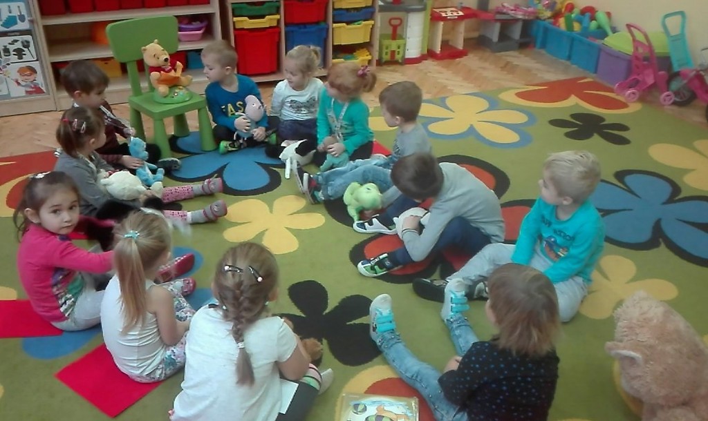 Podczas tego dnia dzieci poznały krótkie historie jakie zaprezentował im Kubuś Puchatek o swoich przyjaciołach ze Stumilowego Lasu. Wspólnie z misiem Przedszkolaki, uczestniczyły w zabawach dydaktyczno-ruchowych, tanecznych, z radością opowiadały o swoich ukochanych przytulankach. Na zakończenie dzieci wykonały prace plastyczną pt. „Mój ulubiony miś”.
