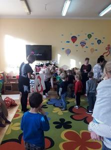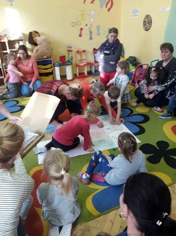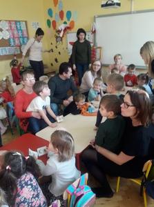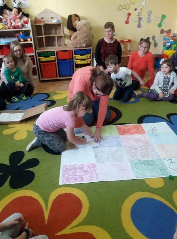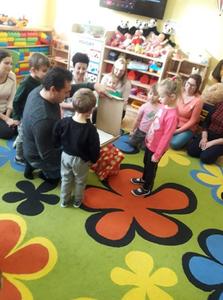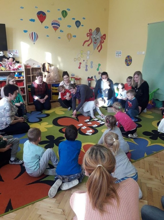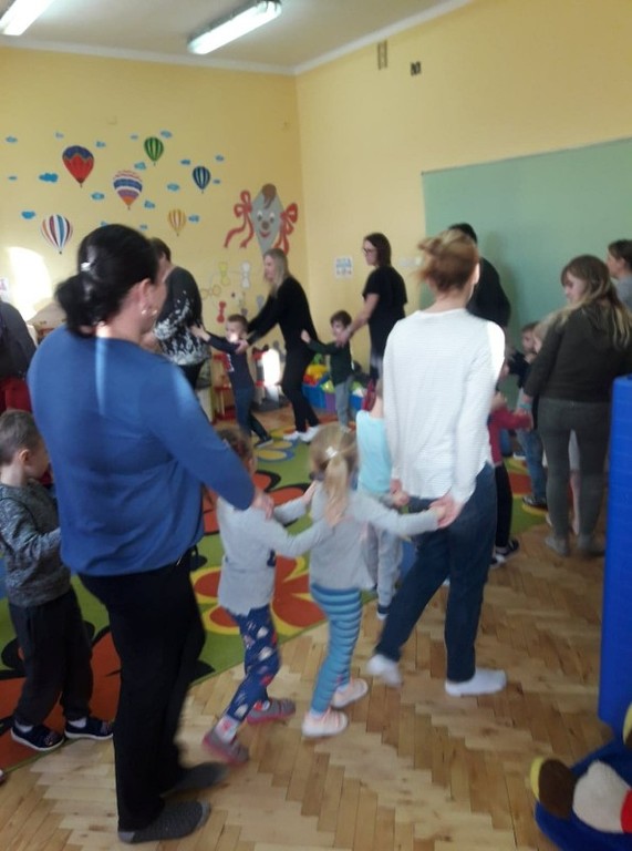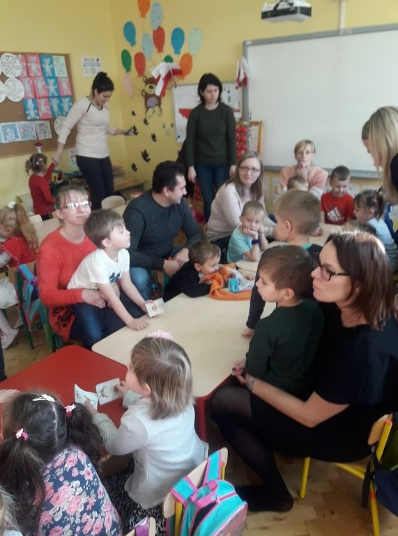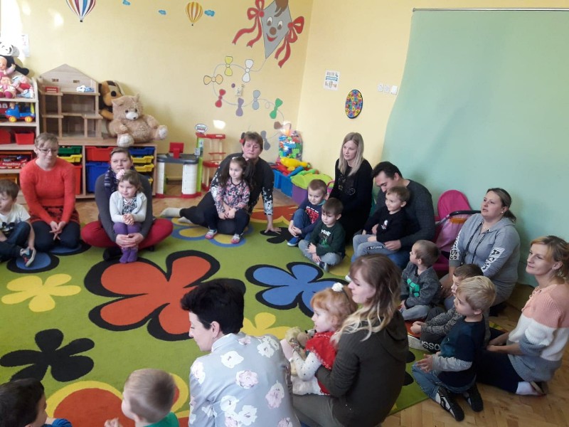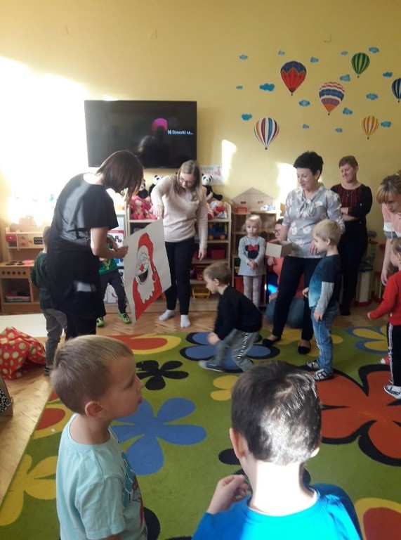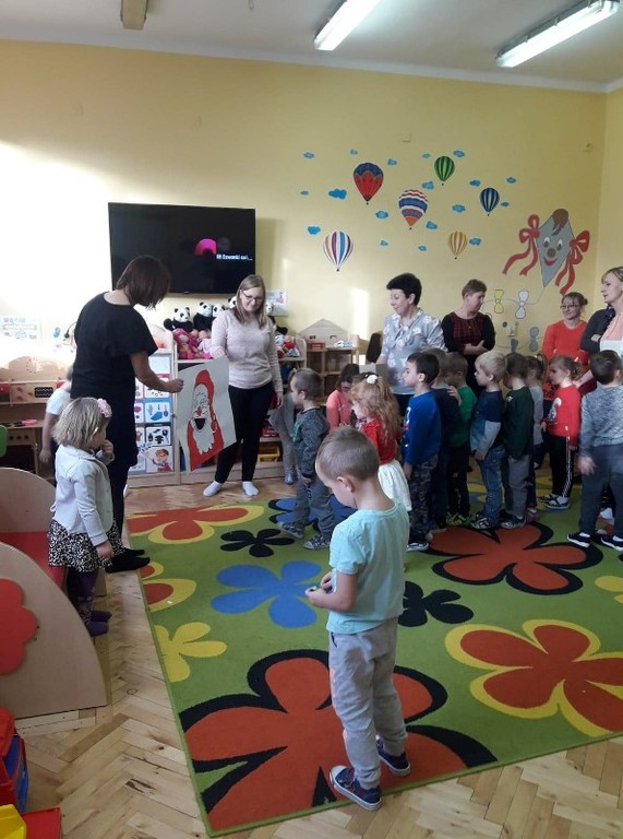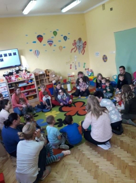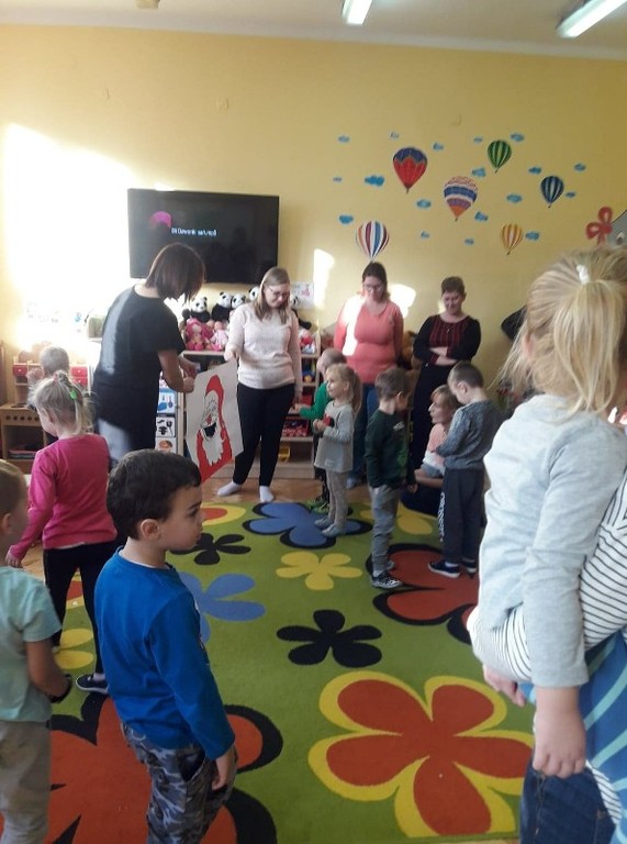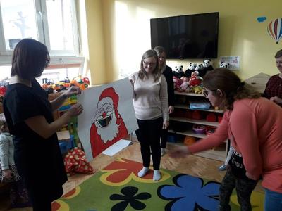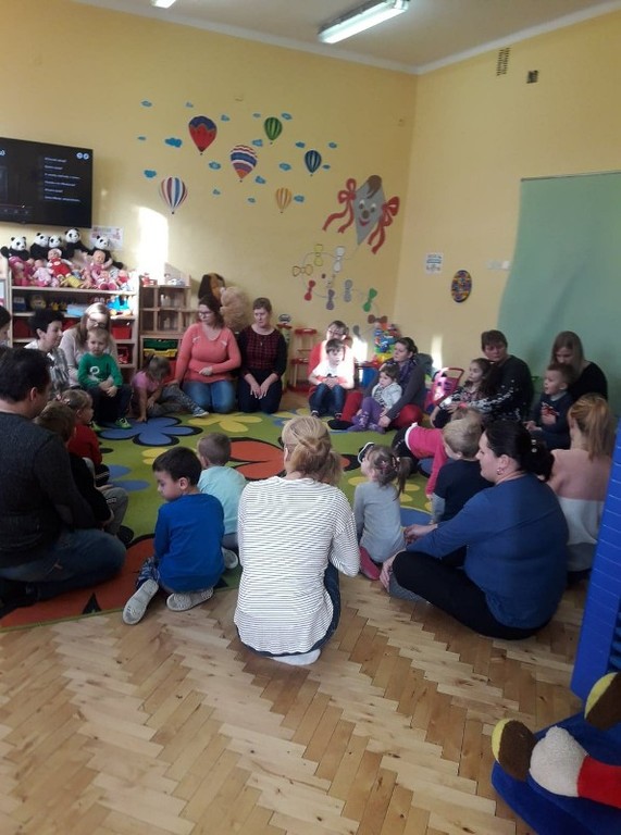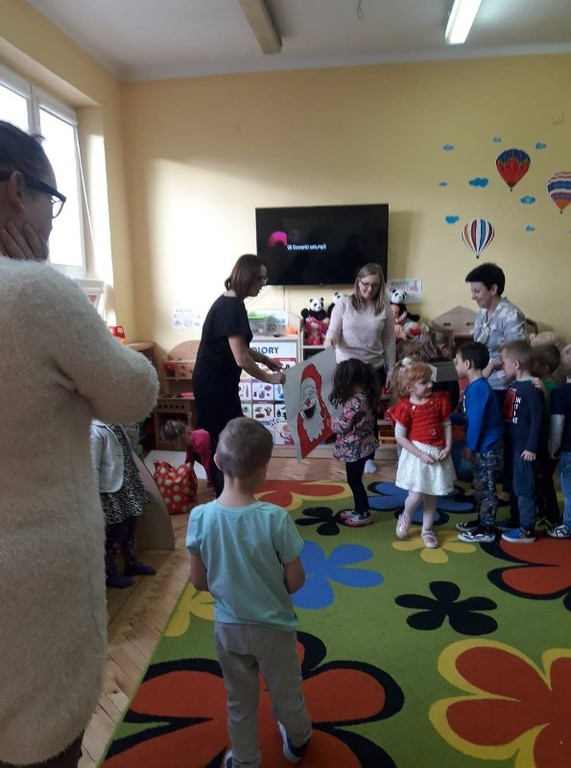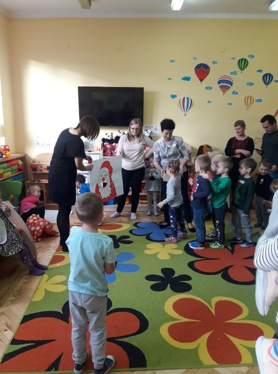 Ta forma spotkań przedszkolnych bardzo spodobała się rodzicom dzieci 3, 4letnich, którzy z zaangażowaniem włączyli się w zainicjowane przez nauczyciela aktywności muzyczne, ruchowe, plastyczne, słowne. Podczas zajęć wszyscy udali się w muzyczną podróż w poszukiwaniu św. Mikołaja. Odnalezienie listu i worka wypełnionego zadaniami od św. Mikołaja połączyło wszystkich we wspólnej zabawie.