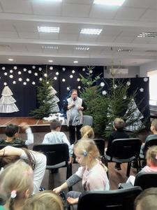 W spotkaniu uczestniczyła również Wójt Gminy Wielgomłyny Pani Bogumiła Dyktyńska, która podziękowała za zaproszenie oraz wyraziła swoją aprobatę dla działań mający na celu wzajemną integrację pokoleń. To był bardzo udany dzień zarówno dla dzieci jak i seniorów. Muzyczne podziękowanie dla organizatorów wykonała Basia Biś z klasy „O” z towarzyszeniem kolegów i koleżanek prezentując pastorałkę „ Była noc”.