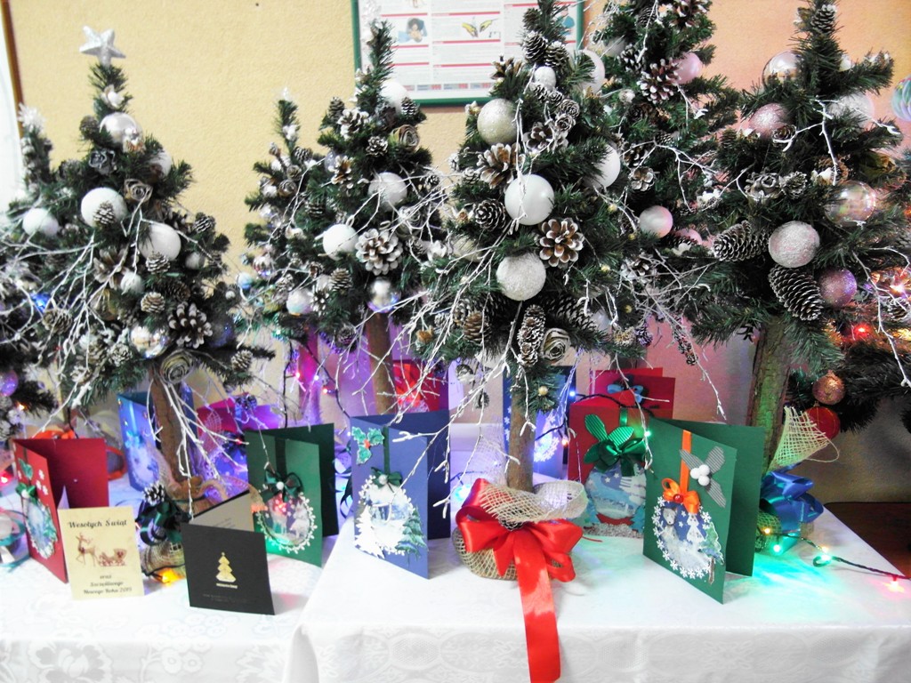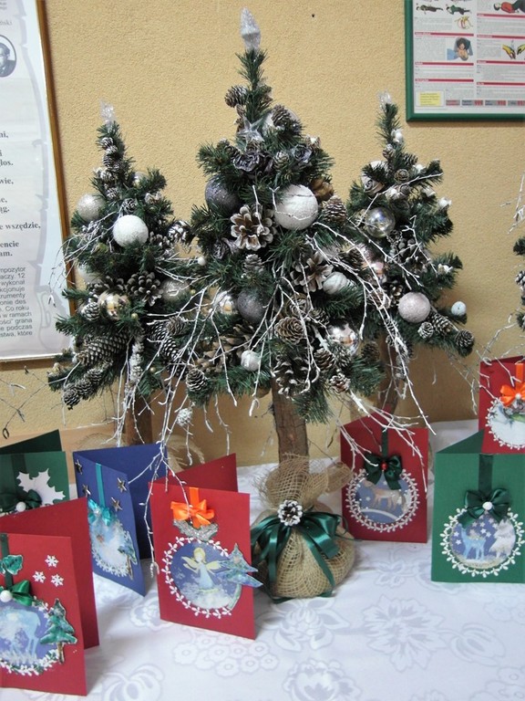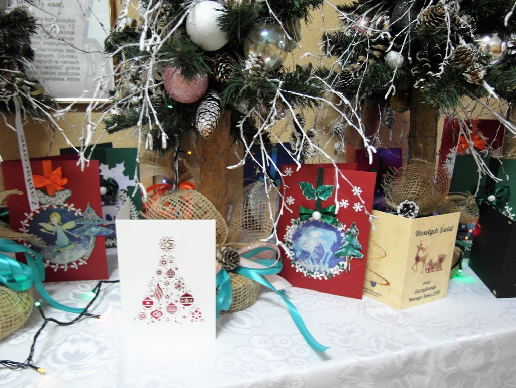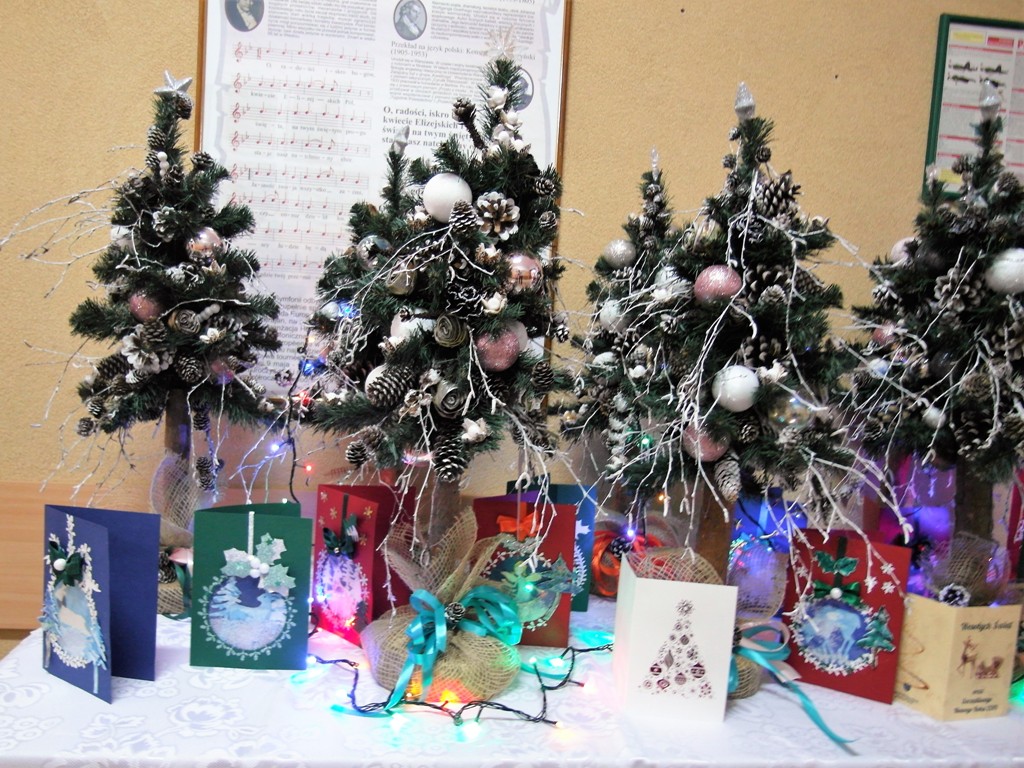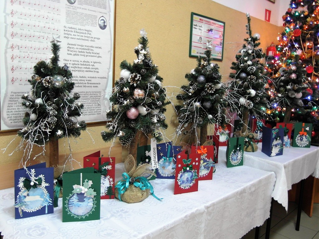 W związku ze zbliżającymi się Świętami Bożego Narodzenia jak co roku uczniowie naszej szkoły przygotowali ekspozycję stroików i kartek świątecznych, które wykonali wraz z nauczycielami. Przy zastosowaniu różnorodnych technik oraz typowych i nietypowych materiałów powstały bardzo ciekawe prace, które cieszą oko odwiedzających szkołę osób.