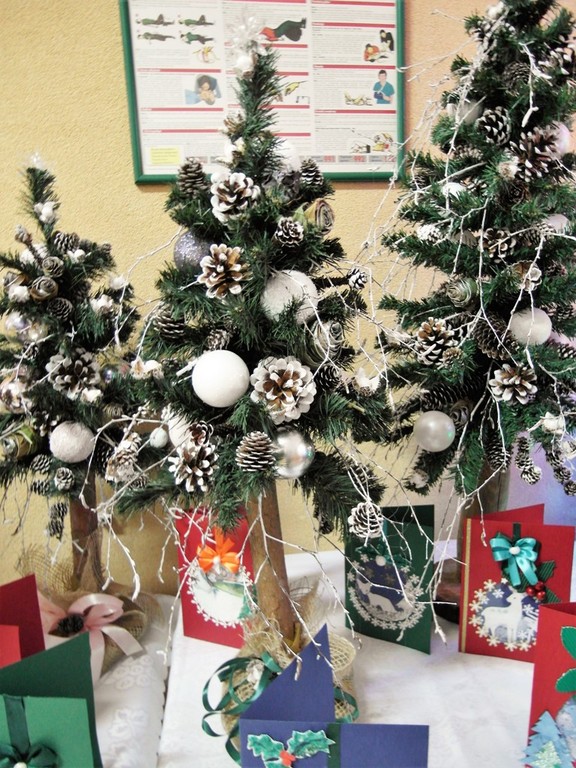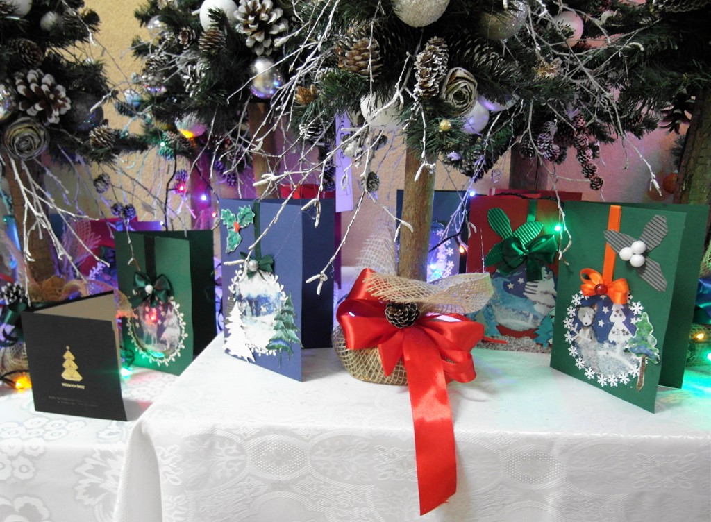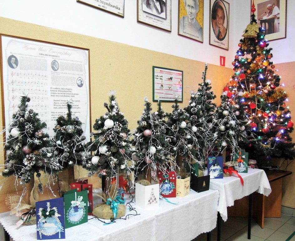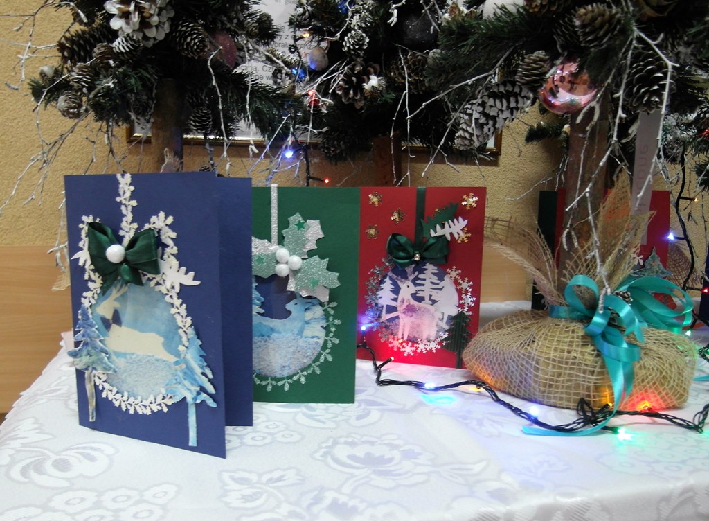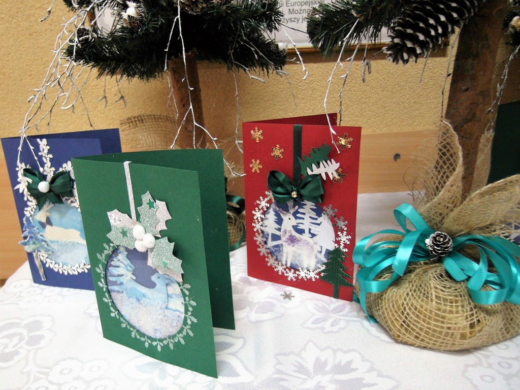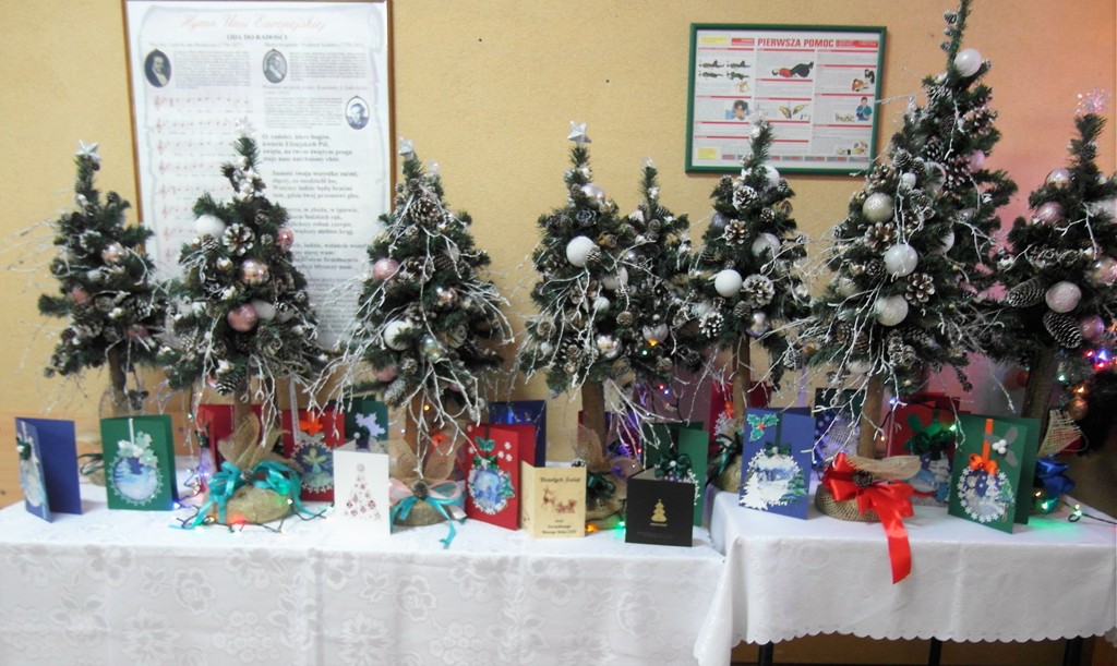 W związku ze zbliżającymi się Świętami Bożego Narodzenia jak co roku uczniowie naszej szkoły przygotowali ekspozycję stroików i kartek świątecznych, które wykonali wraz z nauczycielami. Przy zastosowaniu różnorodnych technik oraz typowych i nietypowych materiałów powstały bardzo ciekawe prace, które cieszą oko odwiedzających szkołę osób.
