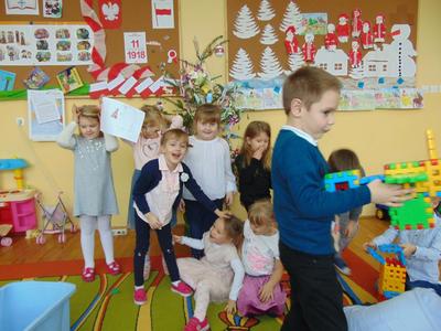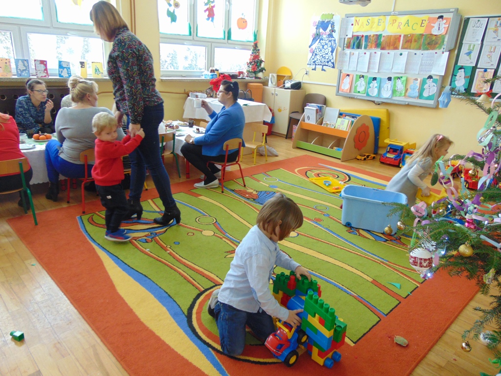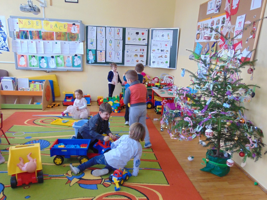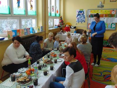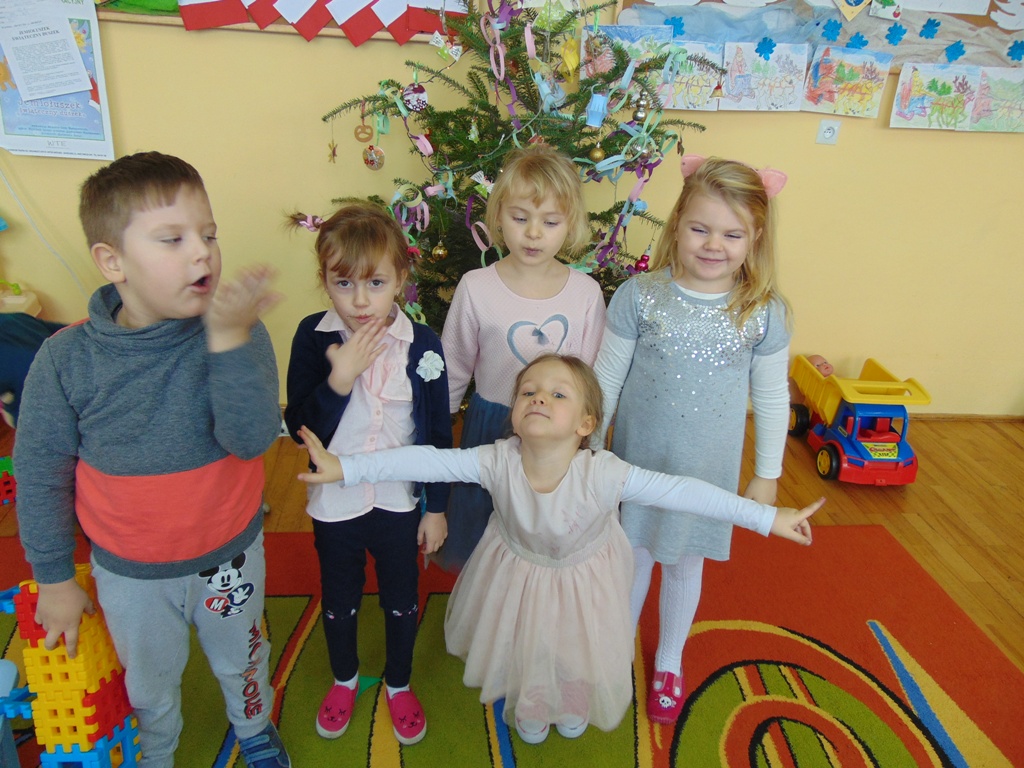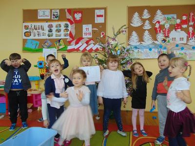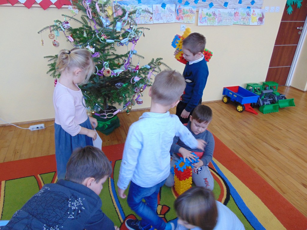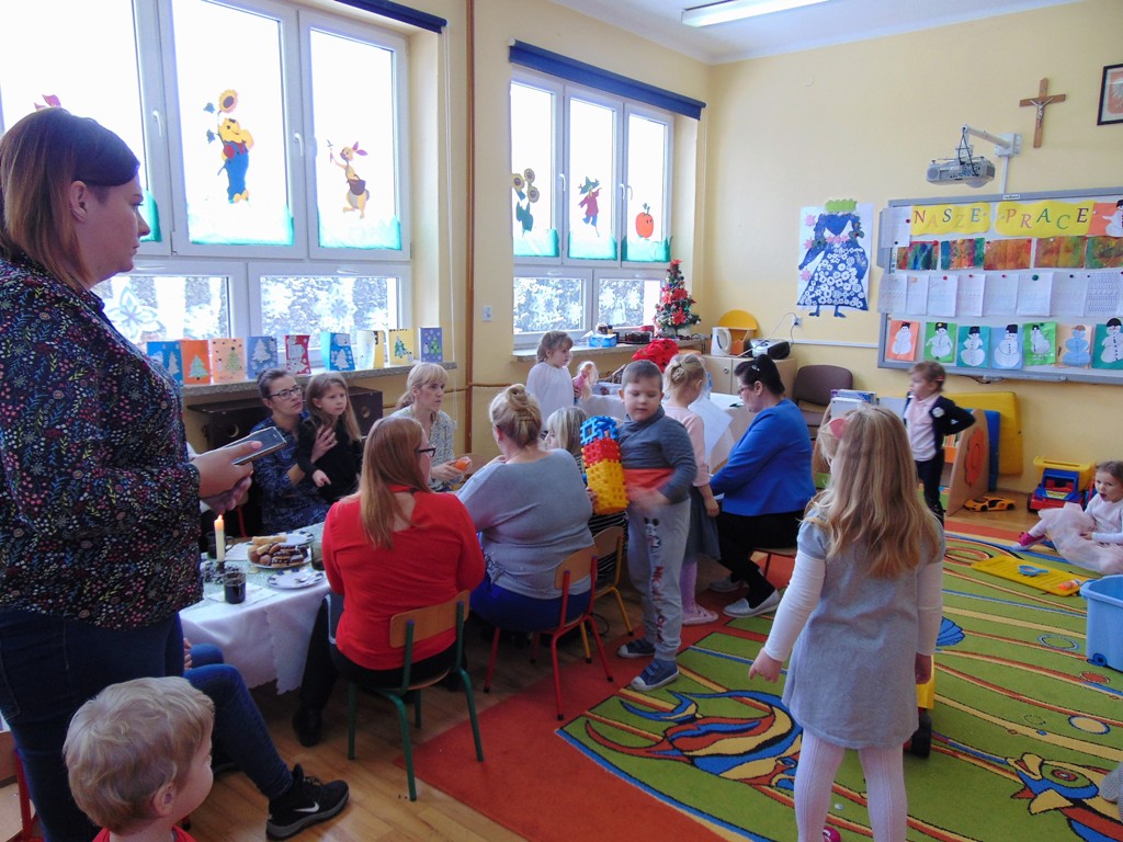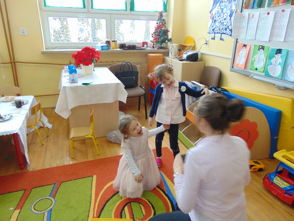 W poniedziałek, 17 grudnia odbyło się spotkanie integracyjne z rodzicami z okazji zbliżających się Świąt Bożego Narodzenia. Uroczystość rozpoczęła się od części artystycznej grupy pięciolatków. Dzieci wyśpiewały radośnie świąteczne piosenki oraz pięknie przywitały przybyłych gości, za co zostały nagrodzone gromkimi brawami. Po występach był czas na wspólne rebusy, kalambury i zabawy taneczne. Wokół panowała świąteczna atmosfera, pełna śmiechu oraz wzajemnej życzliwości.