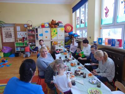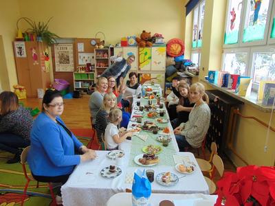 Na zakończenie wszyscy zasiedli do stołu. Były przepiękne i cudownie odśpiewane kolędy przez wszystkich obecnych gości. Dzieci dekorowały choinkę samodzielnie przygotowanymi ozdobami. Wszyscy doskonale się bawili, a w niejednym oku zakręciła się łza. To był wspaniały dzień w naszym przedszkolu. Serdecznie dziękujemy wszystkim osobom, które zaangażowały się w przygotowanie tak wyjątkowej uroczystości.