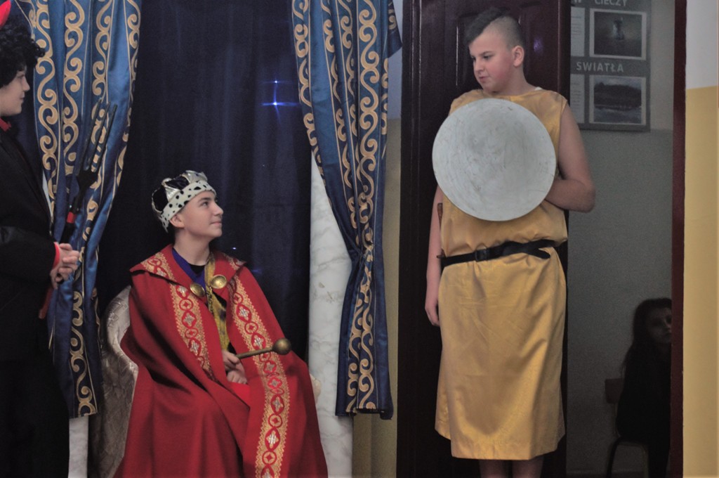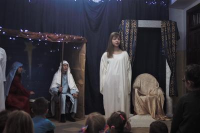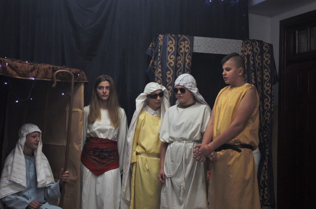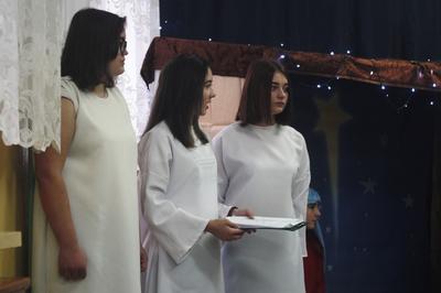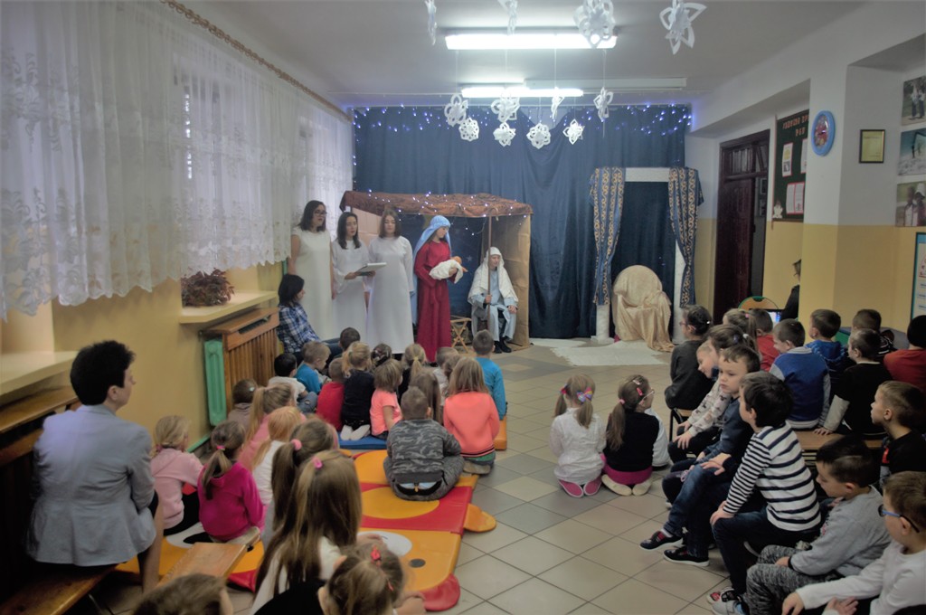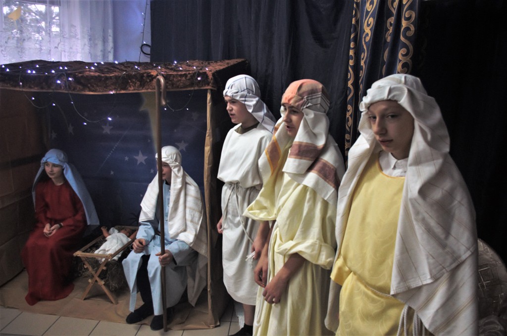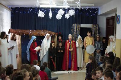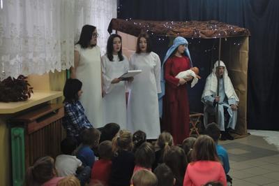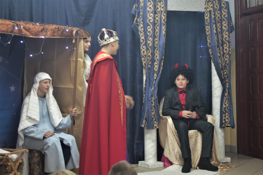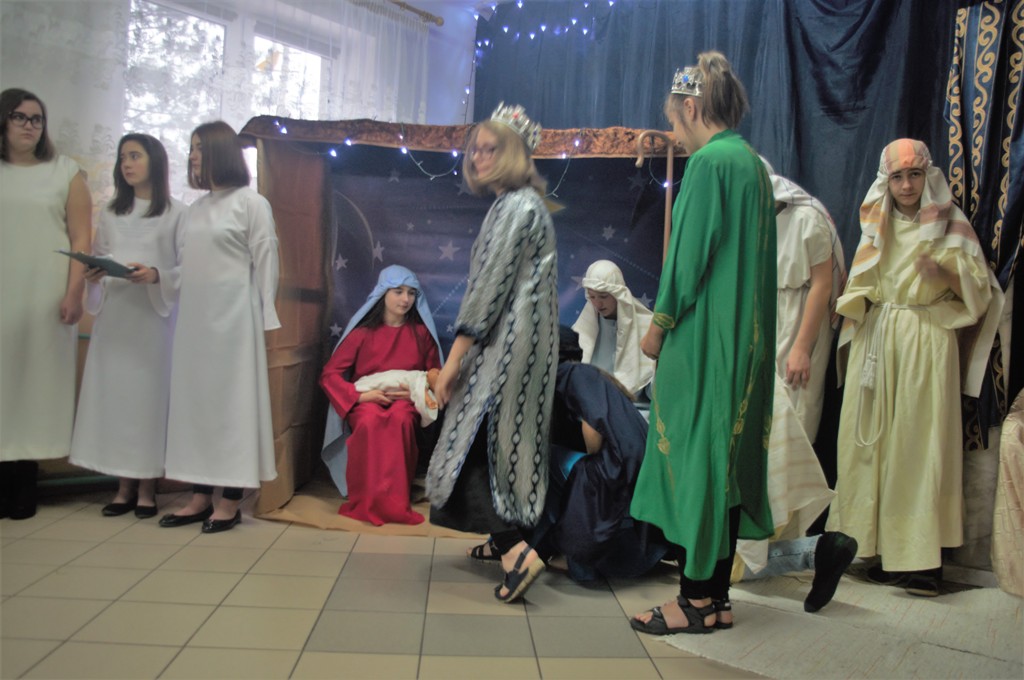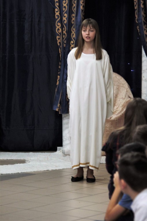 Uczniowie wprowadzili wszystkich w świąteczny nastrój śpiewając kolędy oraz opowiadając historię narodzin Jezusa. Profesjonalną grę aktorską uczniów wsparły realistyczne stroje oraz świąteczna scenografia. Występ został nagrodzony gromkimi brawami.