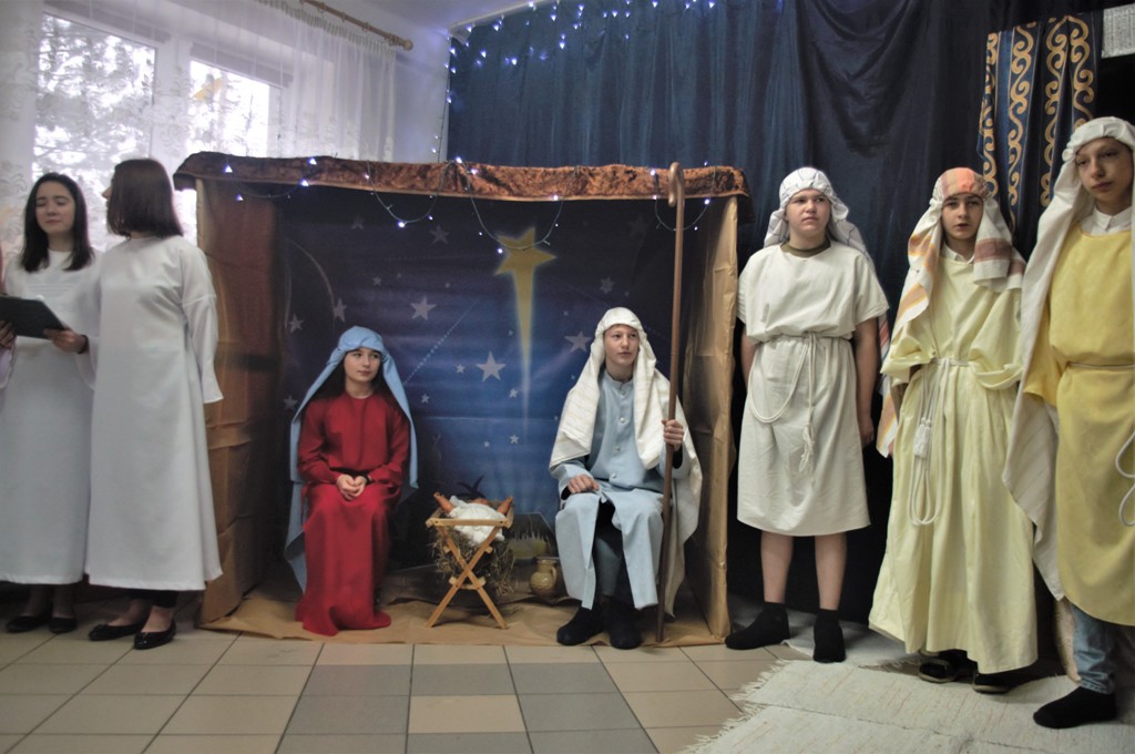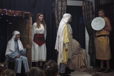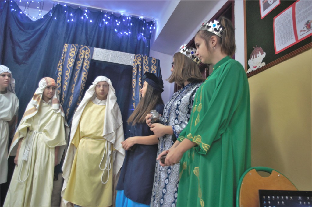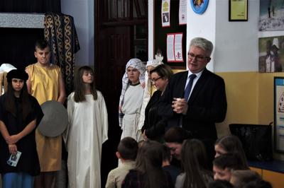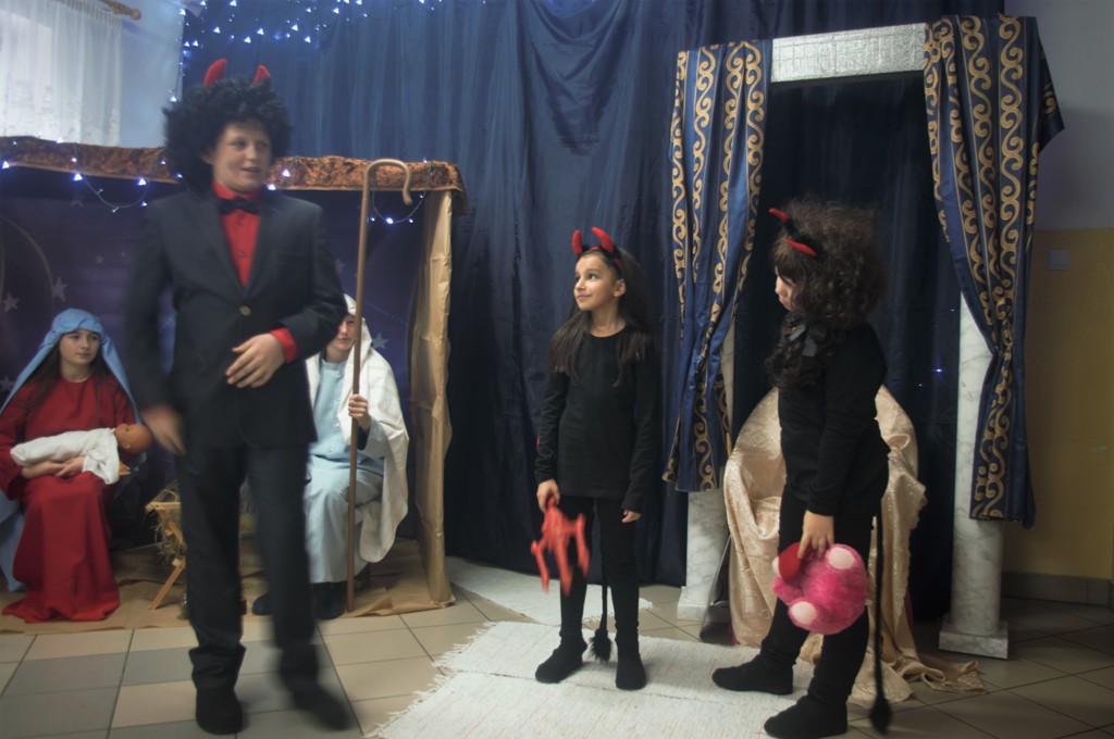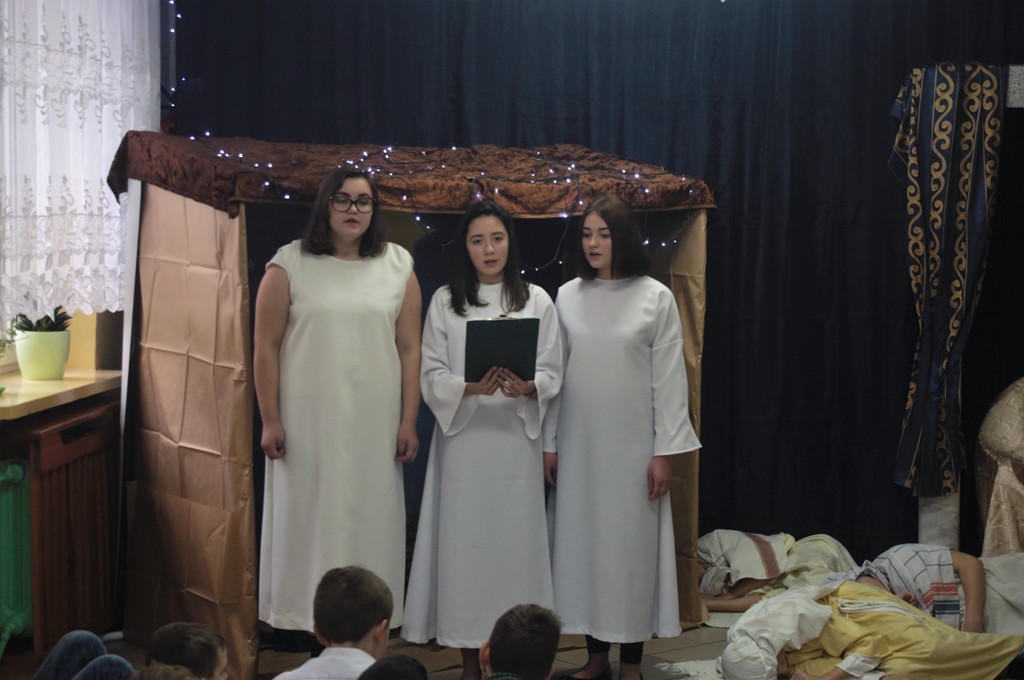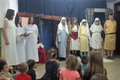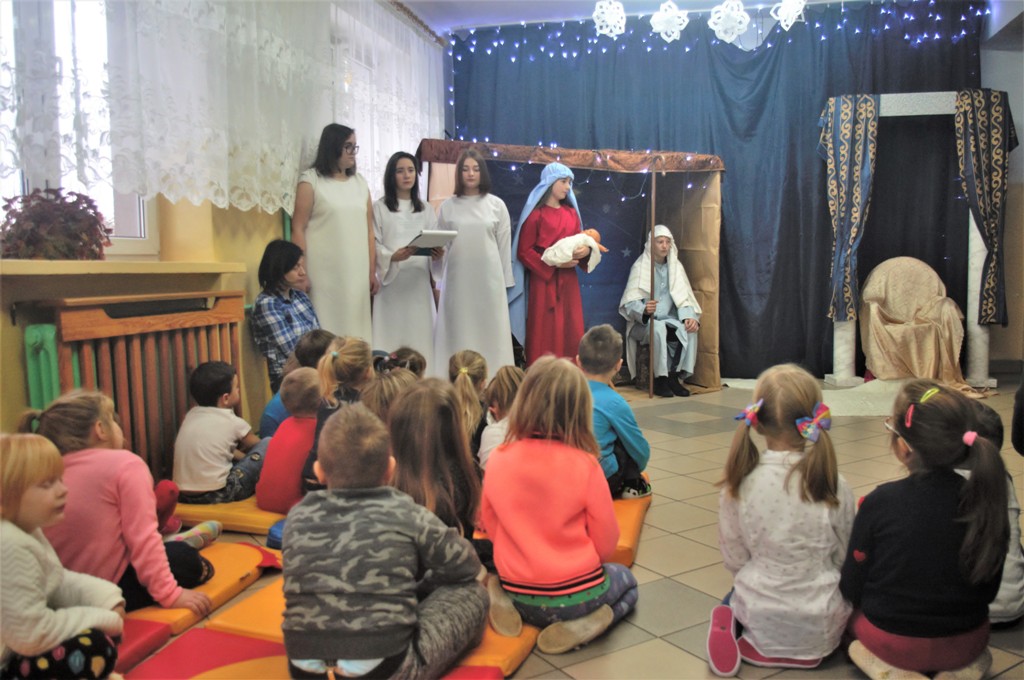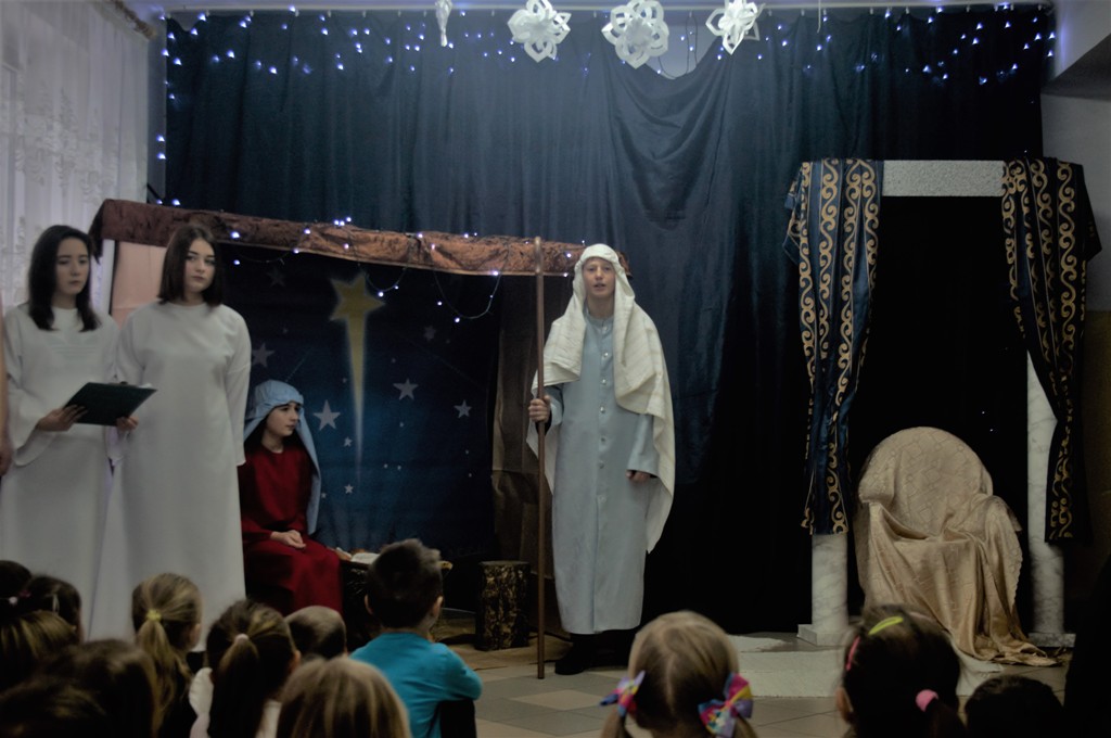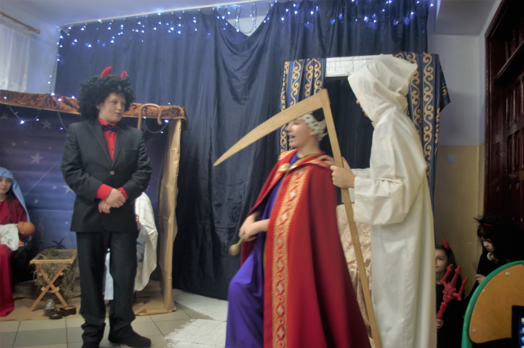 Uczniowie wprowadzili wszystkich w świąteczny nastrój śpiewając kolędy oraz opowiadając historię narodzin Jezusa. Profesjonalną grę aktorską uczniów wsparły realistyczne stroje oraz świąteczna scenografia. Występ został nagrodzony gromkimi brawami.