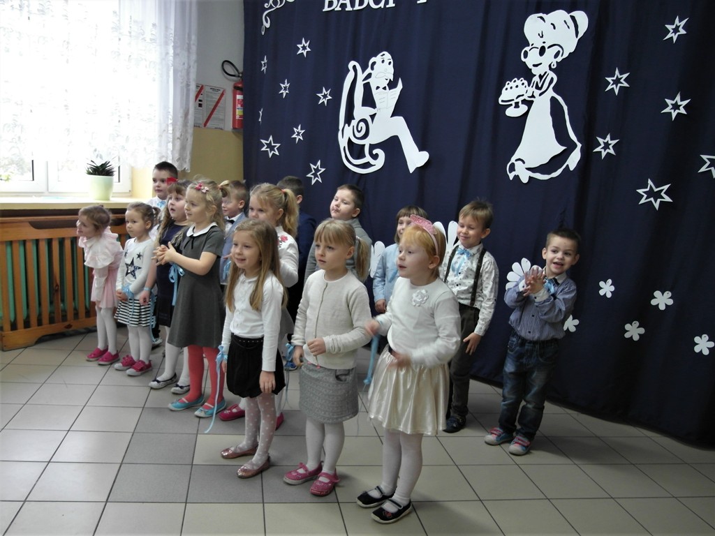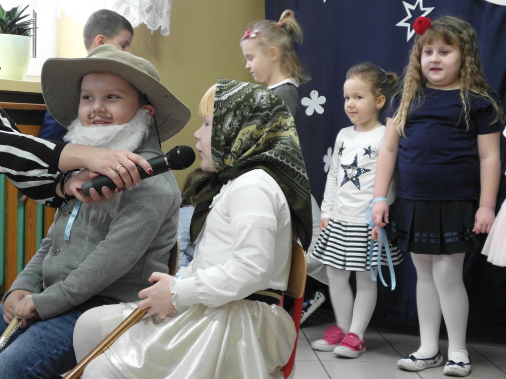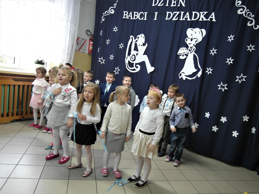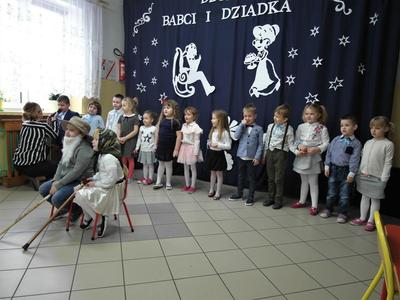 W dniu 29 stycznia w grupie 5-latków odbyła się uroczystość z okazji Dnia Babci i Dziadka. Dziadkowie to szczególnie ważne osoby w życiu wszystkich dzieci. W tym szczególnym dniu każdy przedszkolak pragnął w sposób szczególny podziękować babciom i dziadkom za każdy uśmiech, wsparcie i wspólne chwile pełne radości. Uroczystość rozpoczęła się od przywitania przybyłych gości. Następnie dzieci zaprezentowały cudowne przedstawienie pt. ”Wścibskie wnuczęta” oraz zaśpiewały piosenki pt.„Wesoła piosenka dla Babci i dziadka” oraz „Babciu, droga babciu…”.