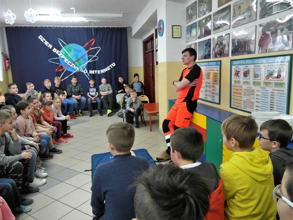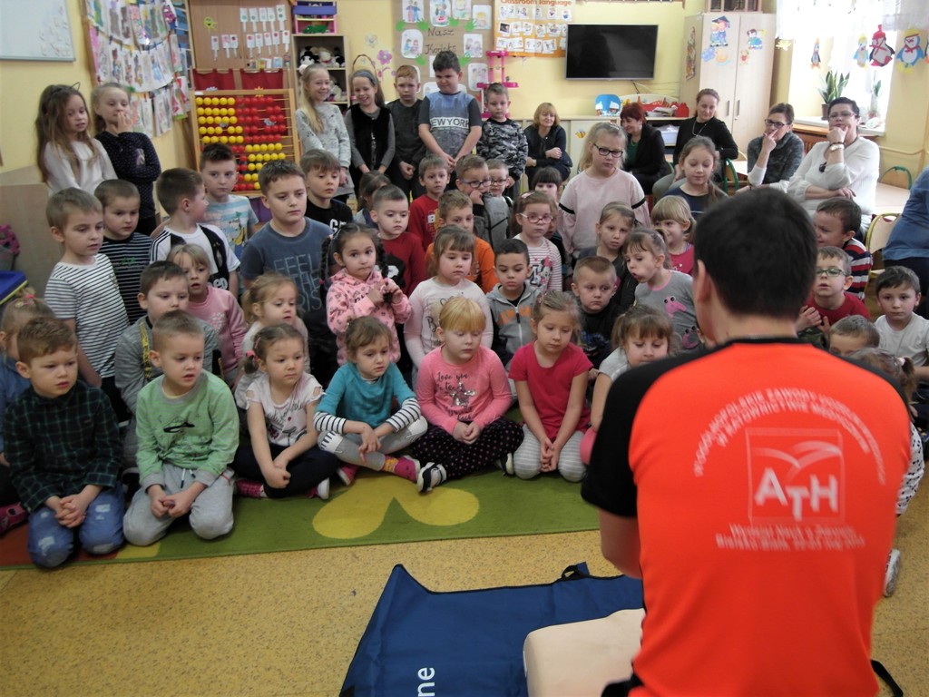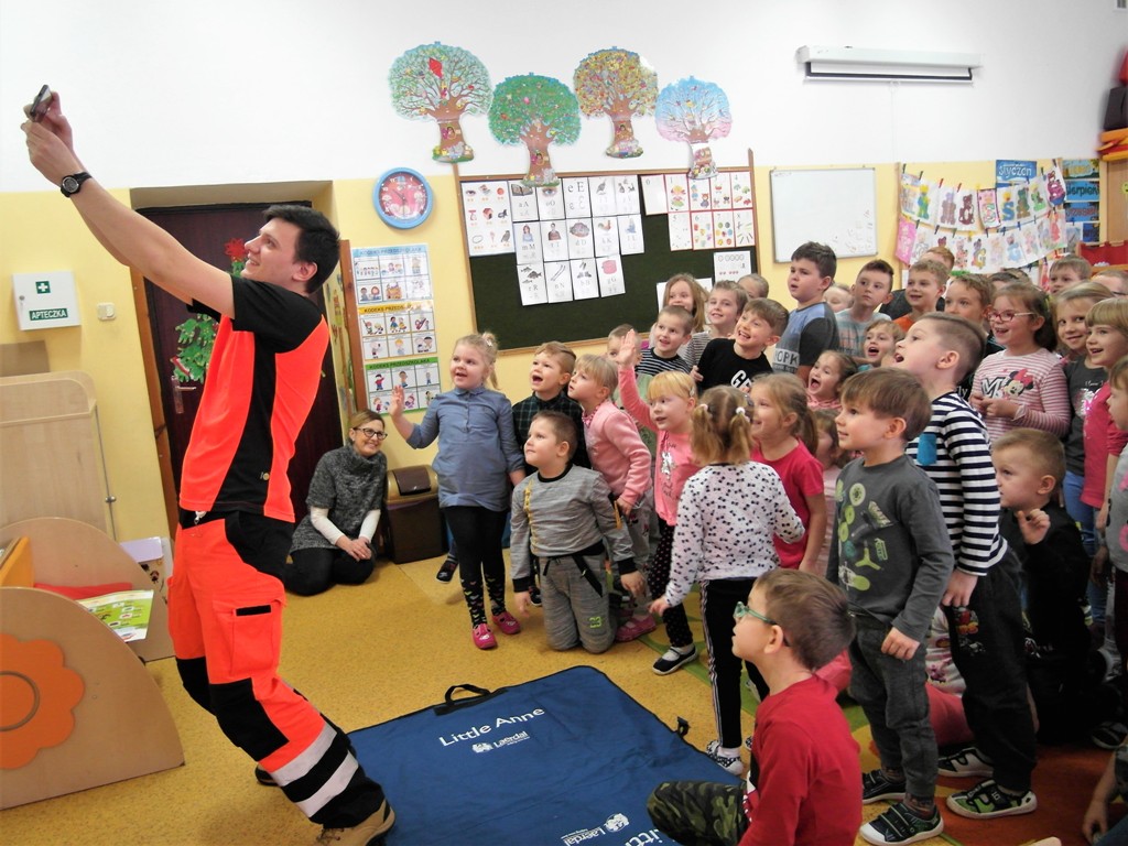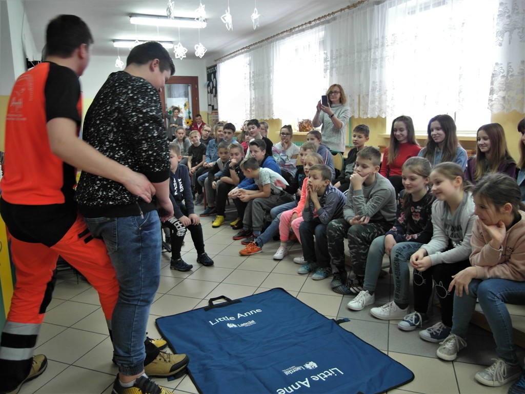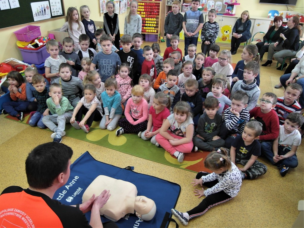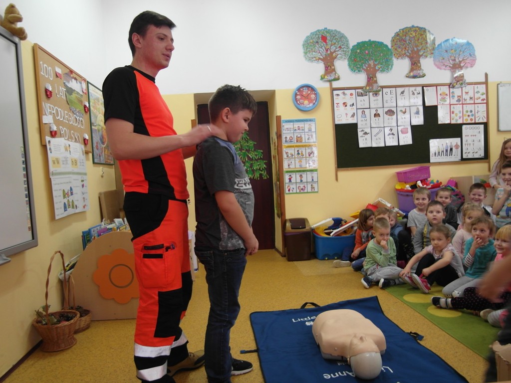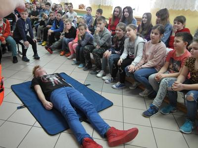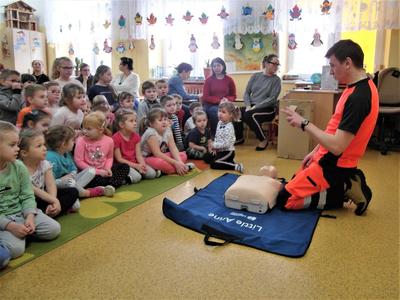 Spotkanie to miało na celu przekazanie dzieciom informacji na temat udzielania pierwszej pomocy oraz prawidłowego zachowania się w czasie wypadku a także w sytuacjach zagrożenia zdrowia i życia.