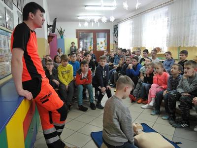 4 lutego naszą szkołę odwiedził pan Rafał Śpiewankiewicz ratownik medyczny pracujący w Szpitalu Powiatowym w Radomsku.