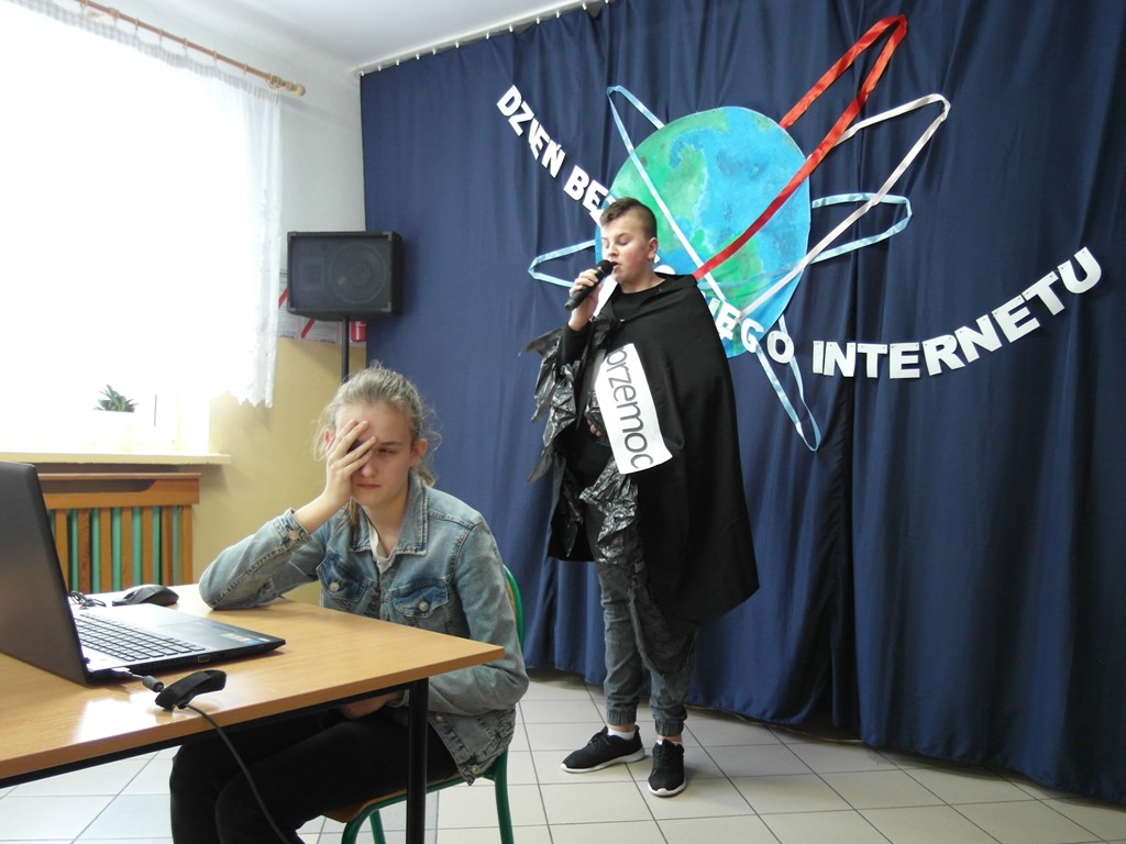 W naszej szkole uczniowie przedstawili problemy związane z nadmiernym używaniem Internetu. Skutkami nadużywania Internetu są: problemy ze snem, problemy z koncentracją, utrata bliskich osób i wiele innych. Wraz z przedstawieniem uczniowie wzięli udział w konkursie plastycznym, każda klasa wytypowała sześcioosobową drużynę, która miała przedstawić plakat o tematyce Internetu. Pierwsze miejsce przyznano klasie II, drugie miejsce zajęła klasa VIII, a trzecie klasa I.