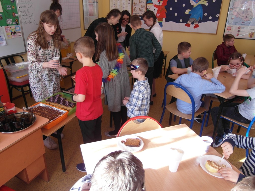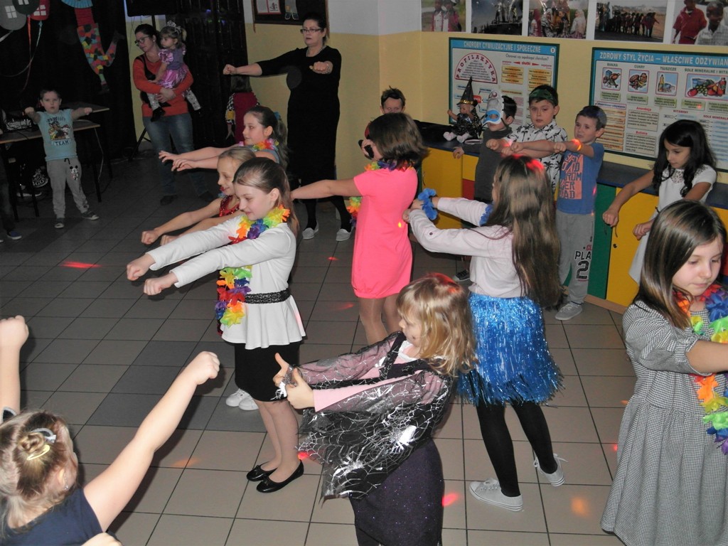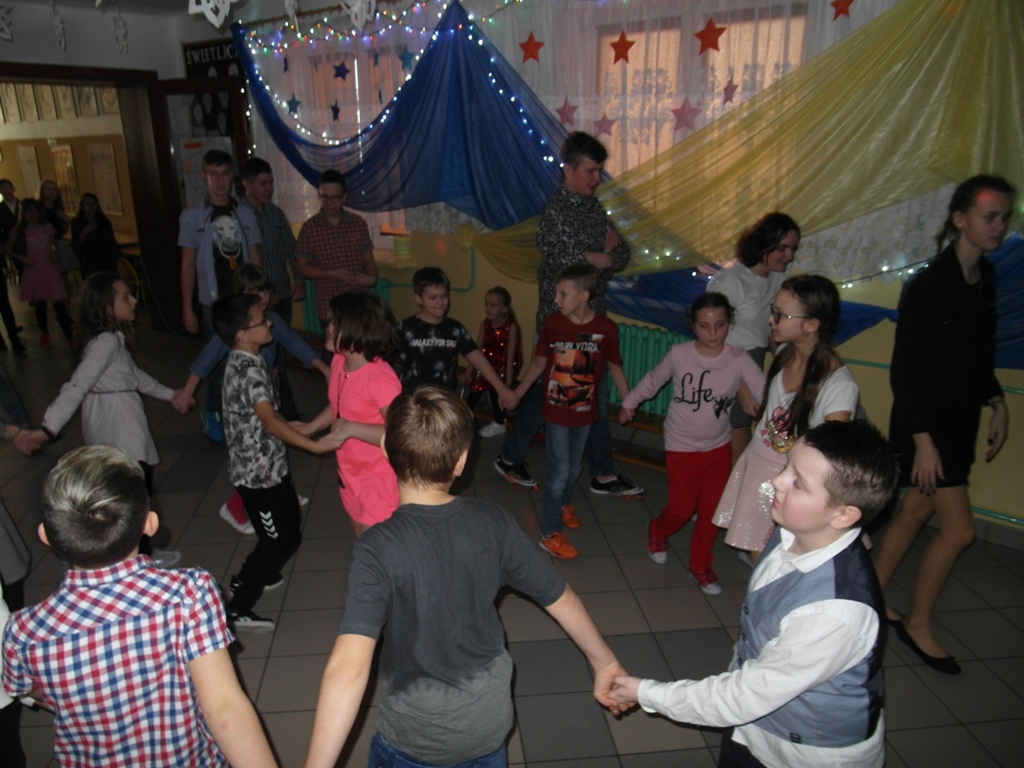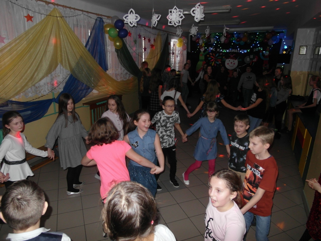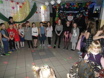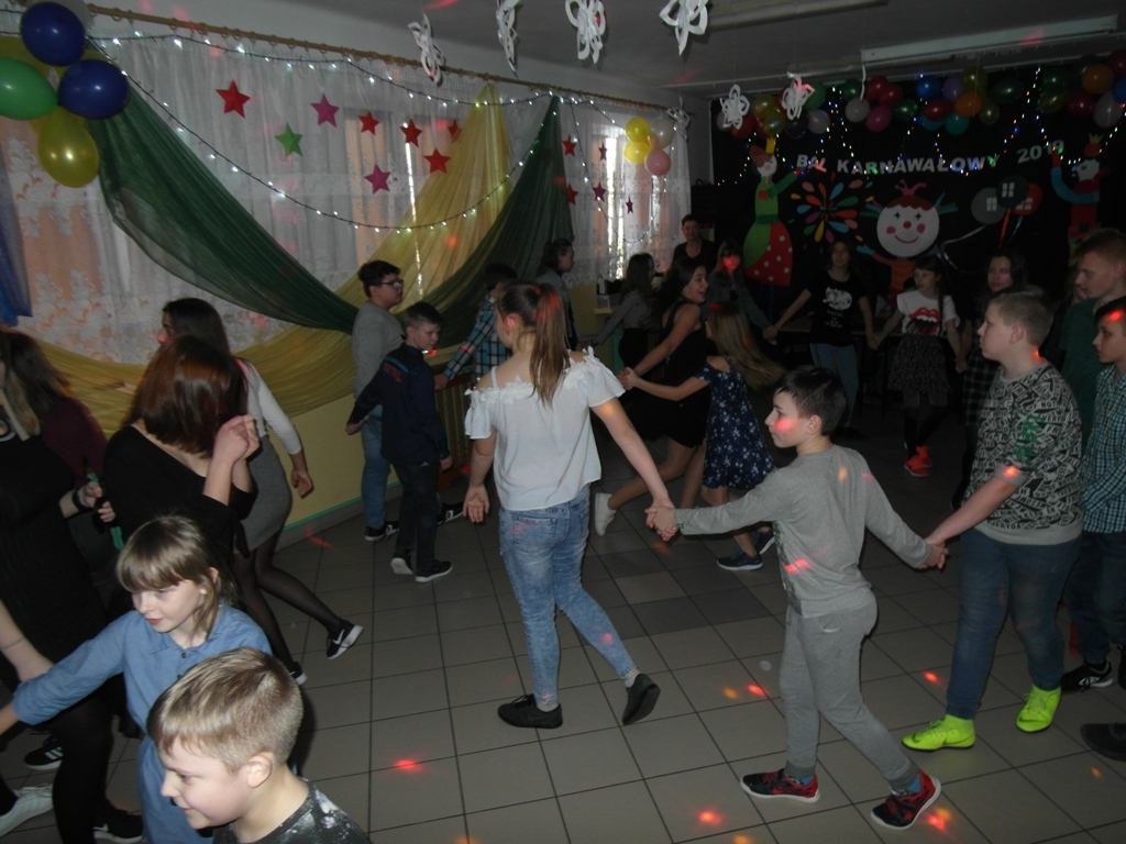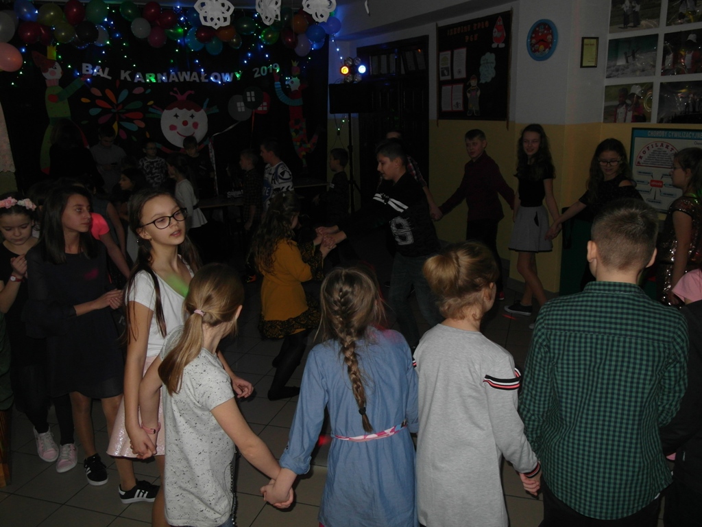 W dniu 7 stycznia w świetlicy szkolnej odbył się ”Bal karnawałowy 2019” zorganizowany przez Samorząd Uczniowski. Zabawę połączono z akcją charytatywną. Uczniowie klasy VII i VIII przygotowali oprawę muzyczną i udekorowali salę. Rodzice upiekli bardzo smaczne ciasta i przygotowali galaretki, które były sprzedawane przez naszych kolegów w kawiarence. Kawiarenka cieszyła się dużym zainteresowaniem. Podczas zabawy wszyscy bardzo dobrze się bawili. Uczniowie klas młodszych byli przebrani w kolorowe stroje karnawałowe.