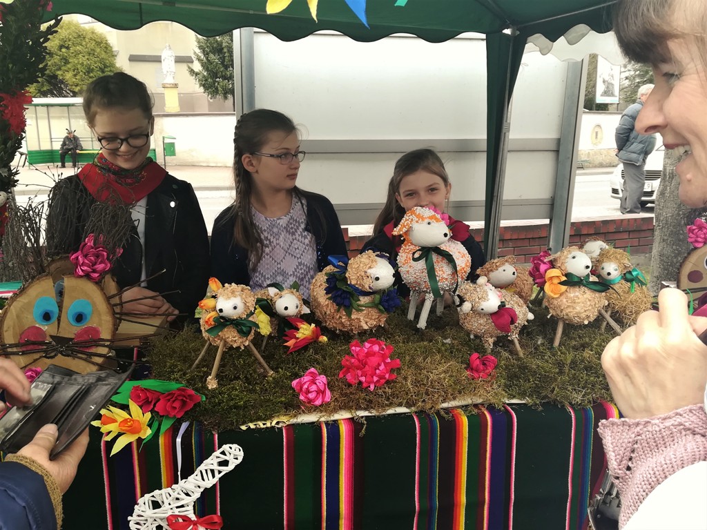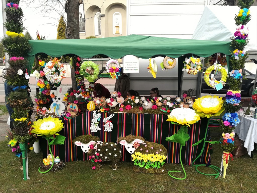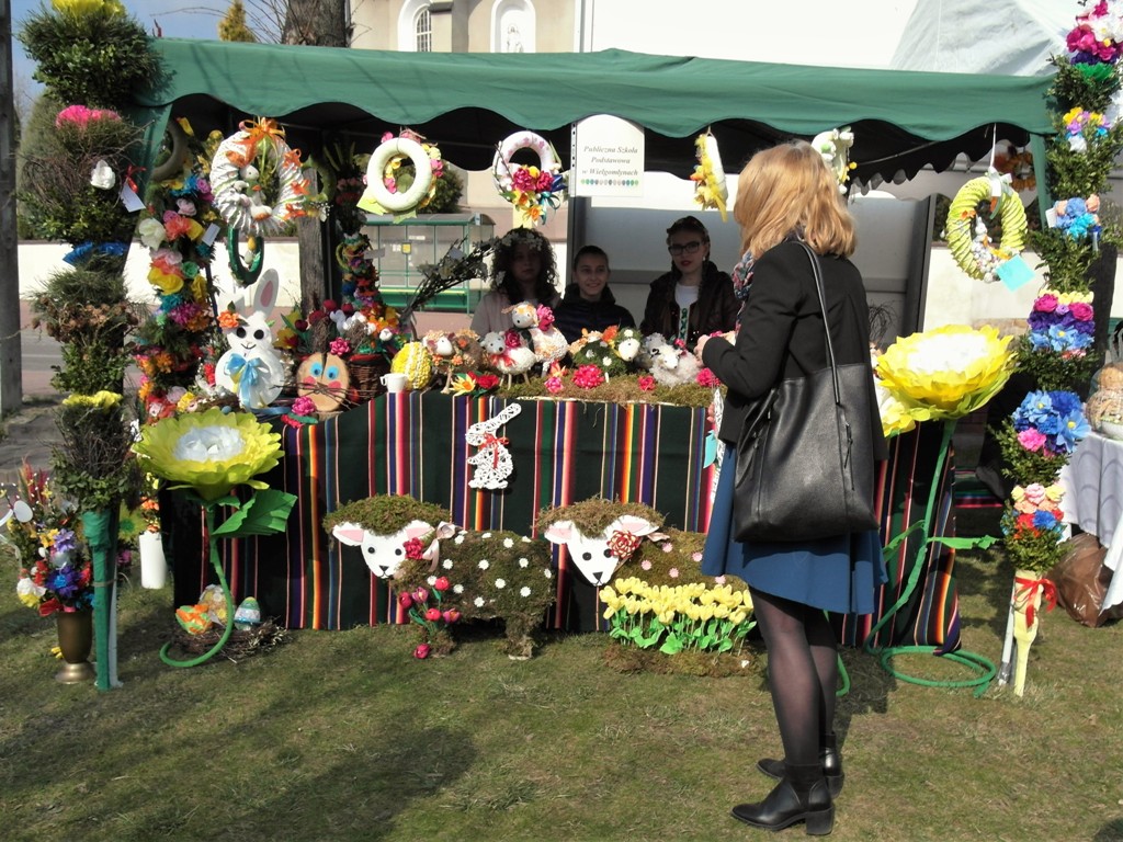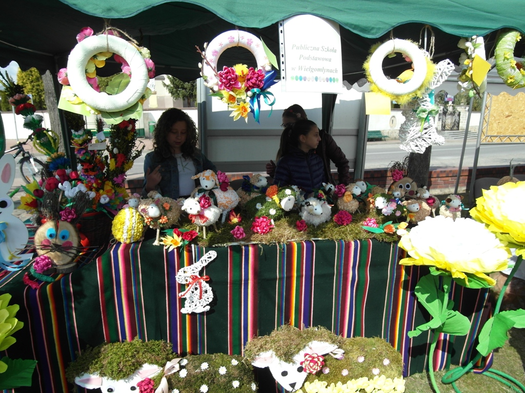 W niedzielne przedpołudnie w parku w Wielgomłynach odbył się coroczny Gminno-Parafialny Kiermasz Wielkanocny. Uczniowie naszej szkoły pod okiem nauczycieli przygotowali wystawę prac, jakie wykonali na warsztatach i zajęciach koła plastycznego w ramach realizowanego projektu. Było można obejrzeć i kupić tradycyjne palmy, baranki, zające, pisanki.