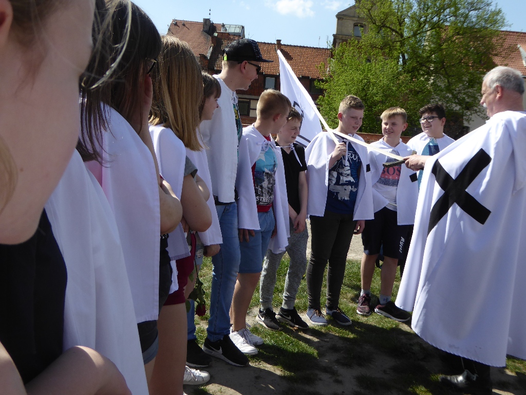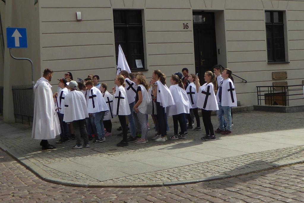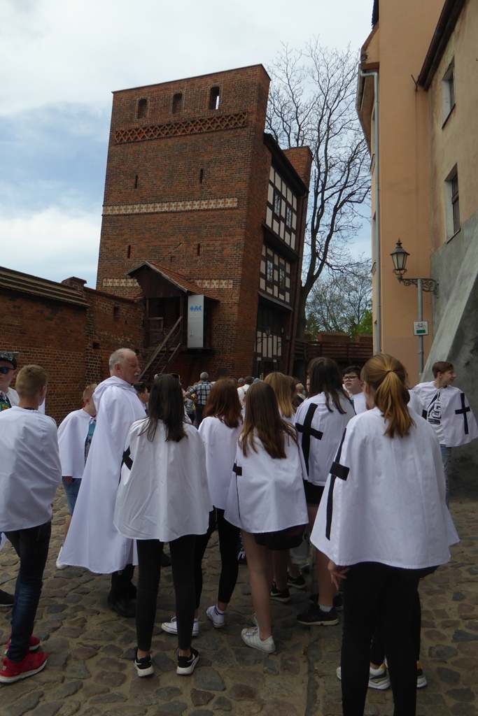 Na drugi dzień zwiedzaliśmy w stylizowanych krzyżackich strojach najważniejsze zabytki Torunia. Z przewodnikiem odwiedziliśmy: