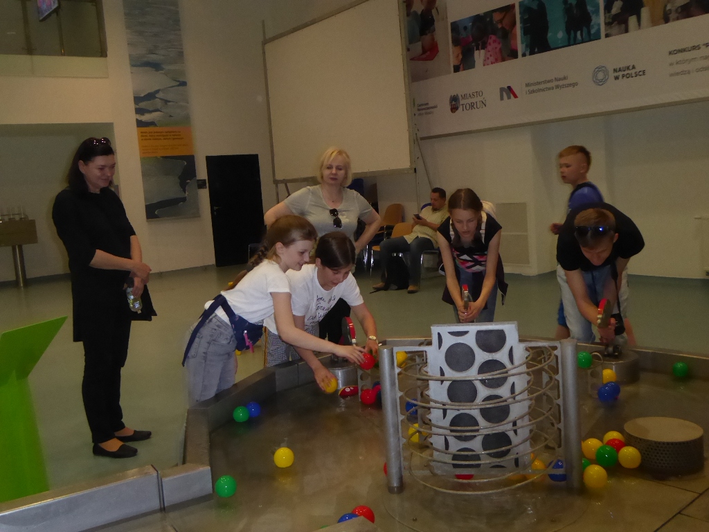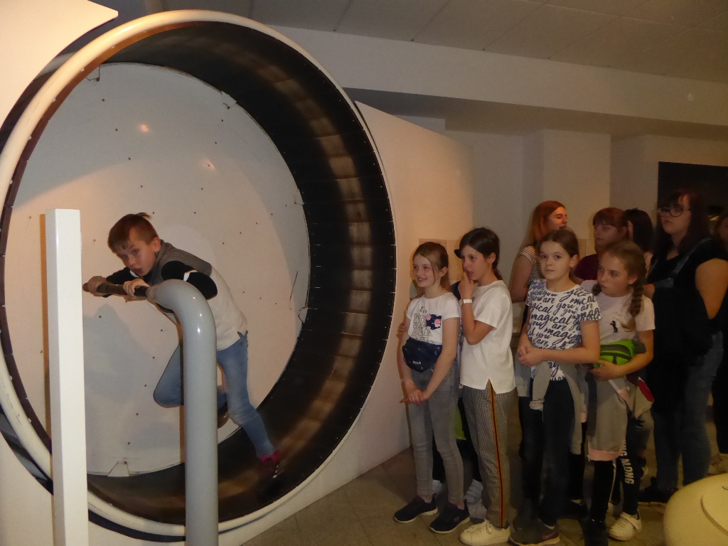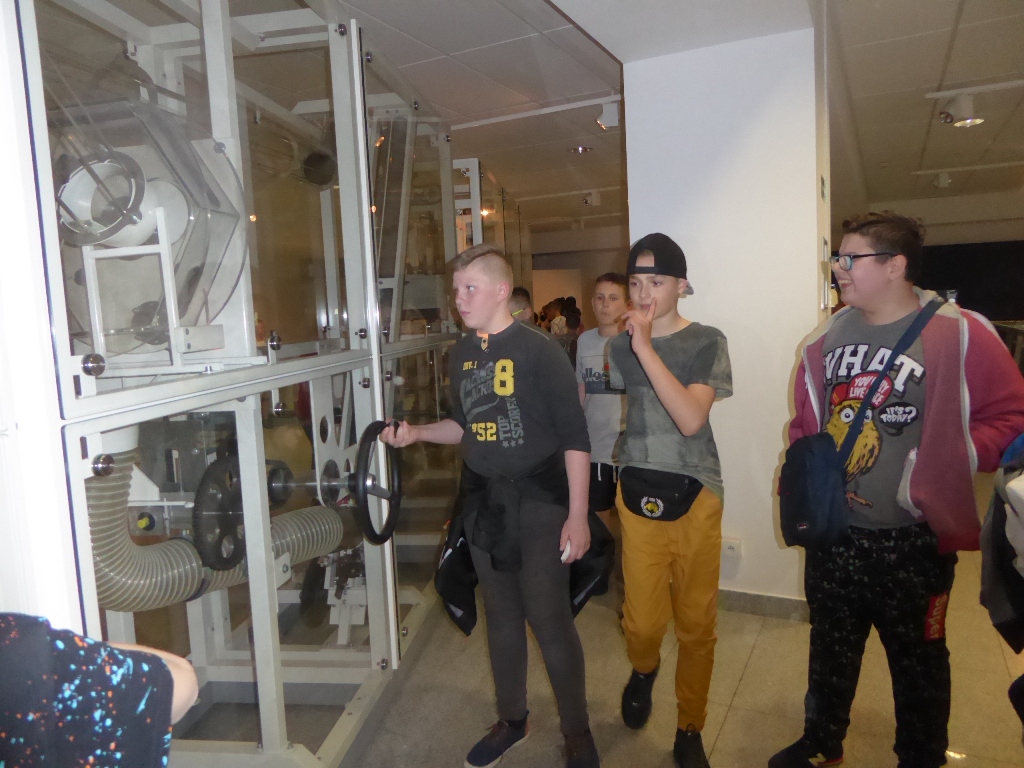 Pierwszym punktem wycieczki było Centrum Nowoczesności Młyn Wiedzy w Toruniu. W tym bardzo nowoczesnym, interaktywnym centrum nauki uczniowie uzyskali wiele informacji z różnych dziedzin nauki: fizyki, chemii, biologii, geografii. Uczniowie poprzez zabawę, badania i doświadczenia poznawali tajniki wiedzy, np.: działanie wodnego młyna, kapsuły galaktycznej czy możliwości wykorzystania podczerwieni.