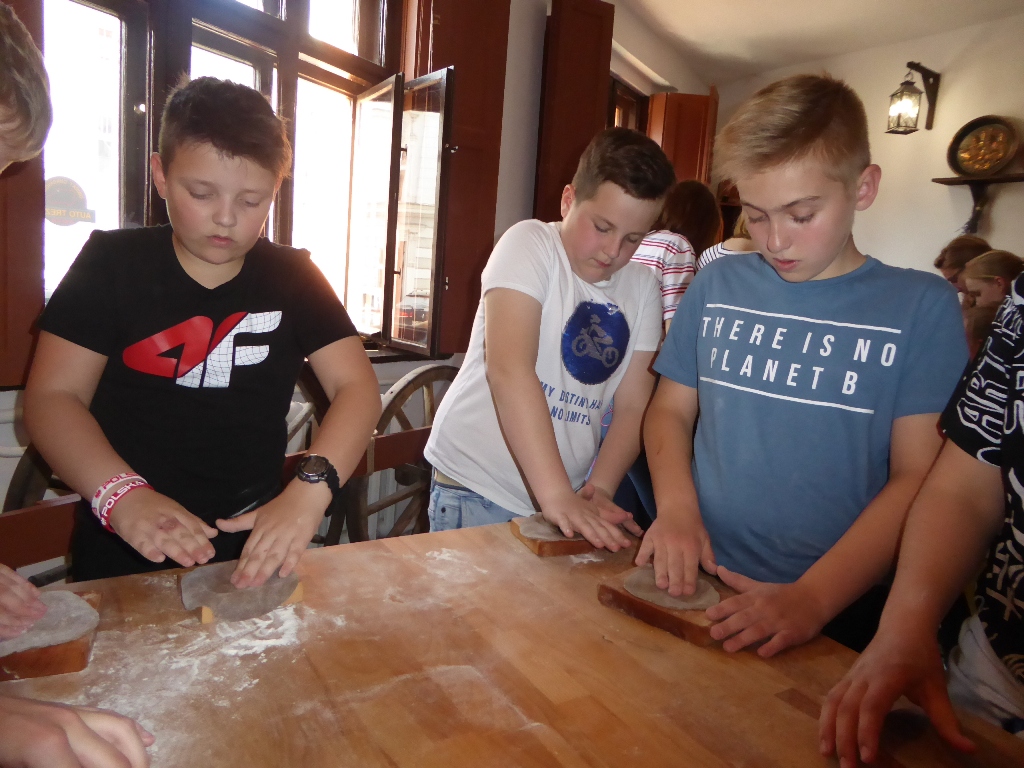 Kolejnym punktem programu była wizyta u „Toruńskich Partaczy”. Uczniowie dowiedzieli się skąd w mieście wzięły się pierniki, a następnie trafili do warsztatu piernikarskiego, gdzie nie tylko nauczyli się piec toruńskie specjały, ale również zyskali wiedzę, skąd sztuka piernikarska znalazła się w akurat w tym mieście nad Wisłą.