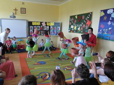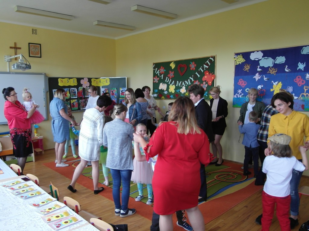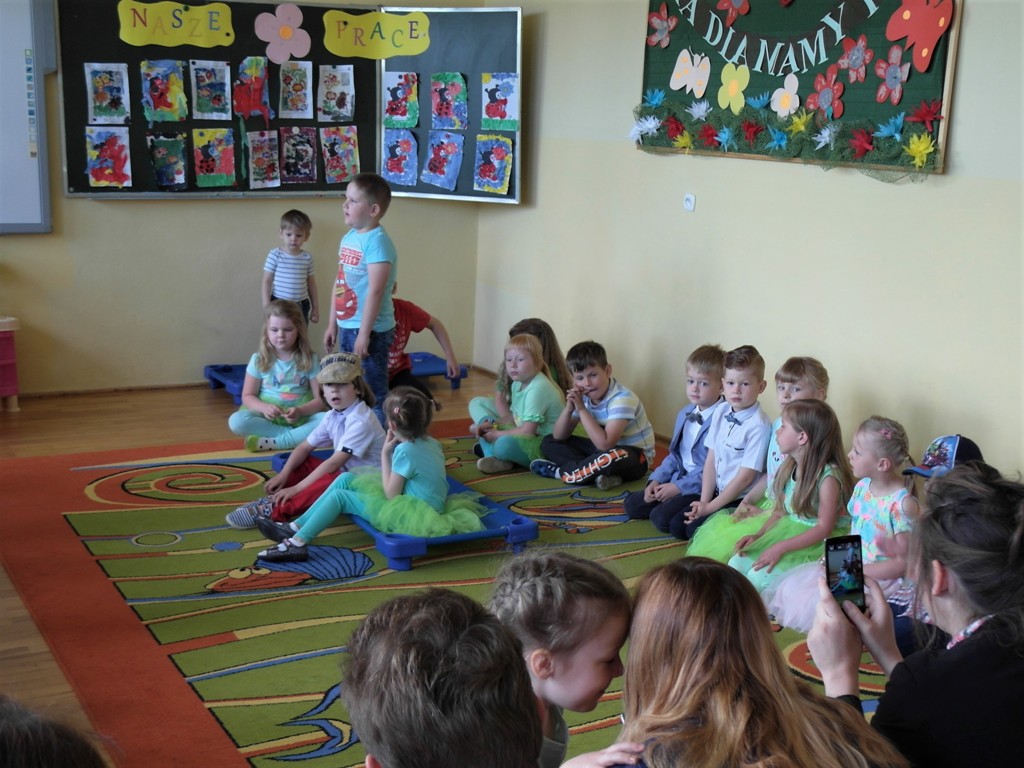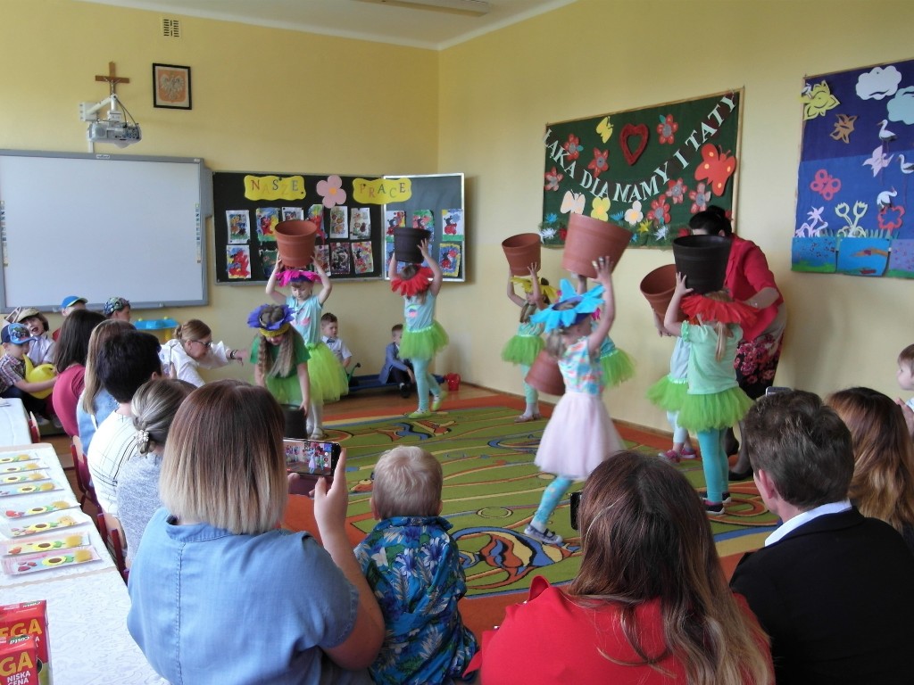 30 maja 2019r., dla grupy 5-latków był dniem uroczystości dla najbliższych dzieciom osób, czyli rodziców. Przedszkolaki w swoim programie artystycznym dały pokaz umiejętności tanecznych, wokalnych, recytatorskich oraz aktorskich. Wszystkich zachwyciła inscenizacja pt.: „Święto Mamy i Taty”, przygotowane piosenki pt., „Rodzeństwo”, „Walczyk dla rodziców”, a także taniec dziewczynek, które wcieliły się w kwiaty wyrastające z doniczek. Po części artystycznej dzieci wraz z rodzicami brali udział we wspólnej zabawie. Uroczystość zakończyła się wręczeniem wszystkim rodzicom własnoręcznie wykonanych przez dzieci upominków. Wokół panowała wspaniała atmosfera. To był wyjątkowy dzień dla grupy 5-latków oraz rodziców. Dziękujemy rodzicom za przygotowanie poczęstunku oraz wszystkim gościom za przybycie.