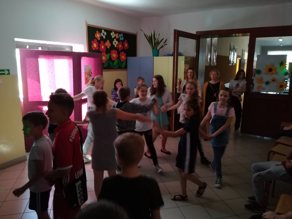 Chłopcy rozegrali mecze piłki nożnej. Po zakończonych rozgrywkach wręczono dyplomy sportowe dla wszystkich klas biorących udział w Dniu Sportu. W świetlicy szkolnej od rana trwała dyskoteka, na której w doskonałej atmosferze bawili się najmłodsi i najstarsi uczniowie naszej szkoły.