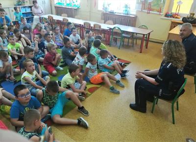 Wszystkim dzieciom życzyli bezpiecznych i udanych wakacji. Dziękujemy za udział w spotkaniu dzielnicowemu aspirantowi sztabowemu Panu Andrzejowi Bieniasowi z którym na spotkania przybyli Pani nadkomisarz Marzena Kałuzińska oraz Pan aspirant Andrzej Wróbel.