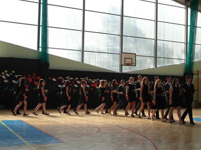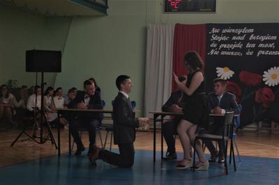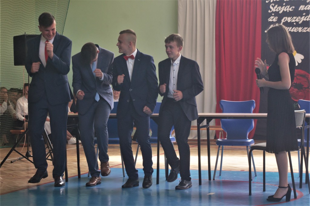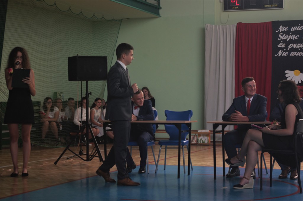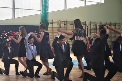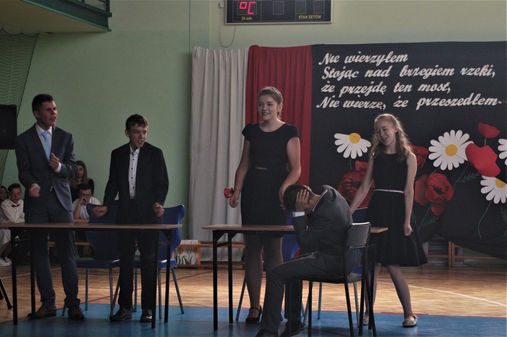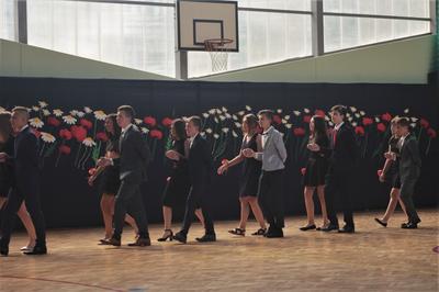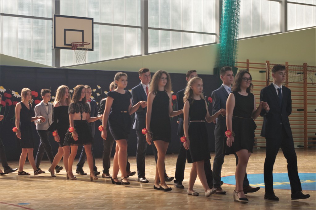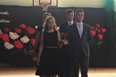 Uczniowie klasy VIII we współpracy z siódmoklasistami przygotowali część artystyczną, którą rozpoczęli od Poloneza, którego zatańczyli pewnie, dostarczając widzom wielu wrażeń, który długo zostanie w naszej pamięci!. Potem były zabawne scenki z życia ucznia w szkole oraz pożegnanie przygotowane przez młodszych kolegów. Tę część uroczystości przygotowali wychowawcy klas, Pani Zofia Witaszczyk i Pani Małgorzata Dyktyńska. Wspaniałą dekorację wykonały Panie Elżbieta Olczyk i Pani Agnieszka Wróblewska z nieocenioną pomocą uczniów klasy siódmej.