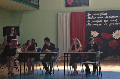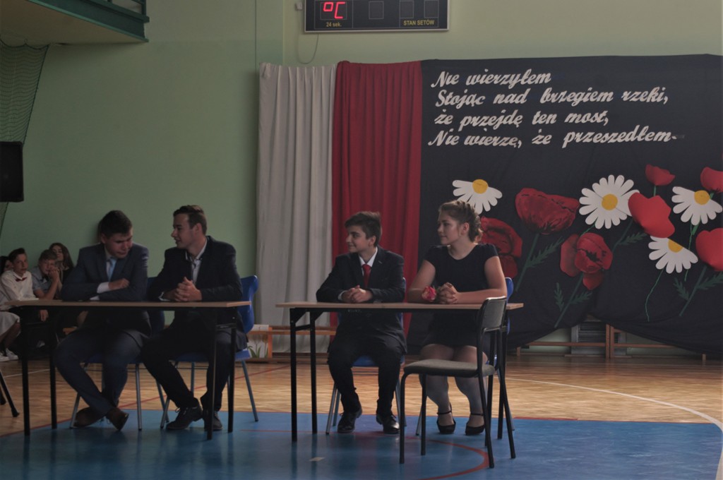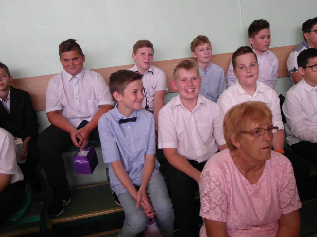 Spotkanie miało charakter historyczny. 15 uczniów jako pierwsi po reformie oświaty zakończyło dzisiaj ośmioklasową szkołę podstawową. Przed nimi droga ku indywidualnemu rozwojowi, ku odkrywaniu nowych możliwości, ku dorosłości. Życzymy im, aby w kolejnej szkole odnaleźli miejsce dla siebie, odnaleźli nowych równie wspaniałych kolegów, przyjaciół. Ciepło wspominajcie to miejsce, gdzie przez 9 lat byli blisko nas i budowali atmosferę tej szkoły.