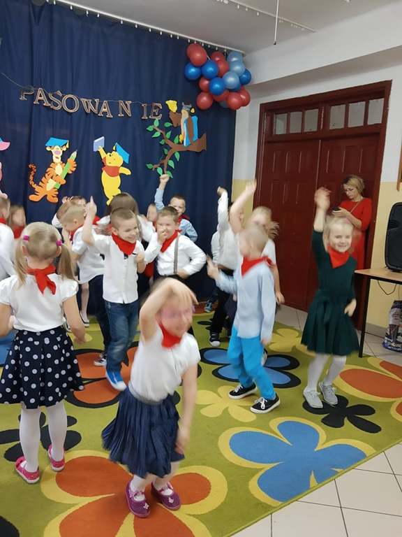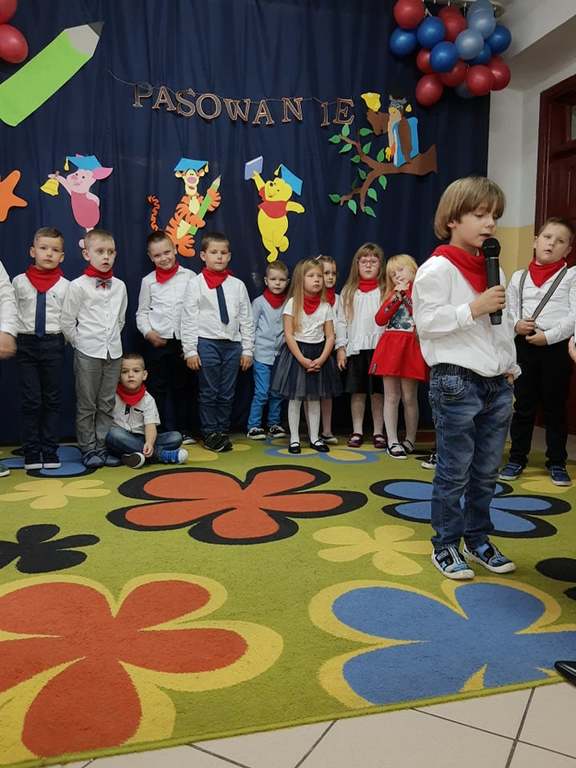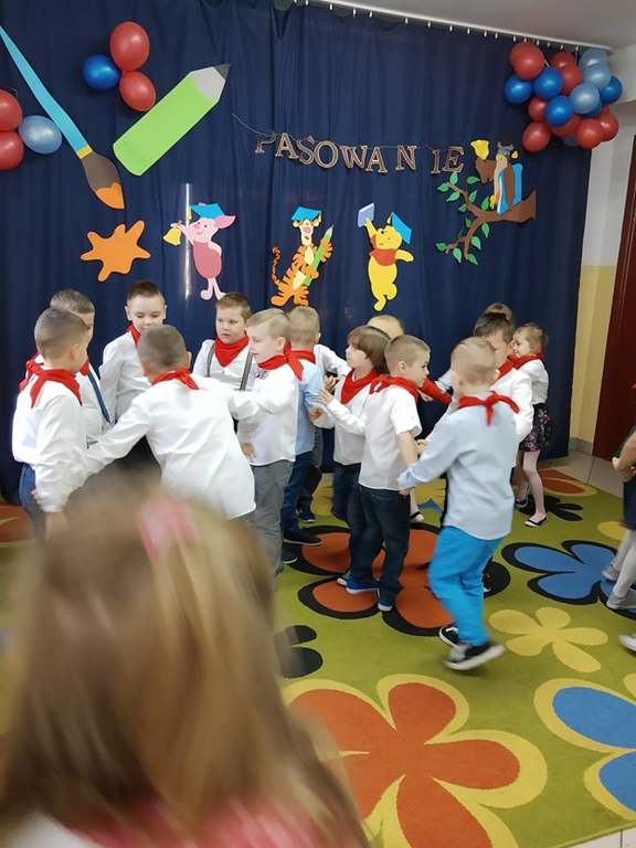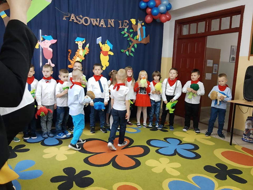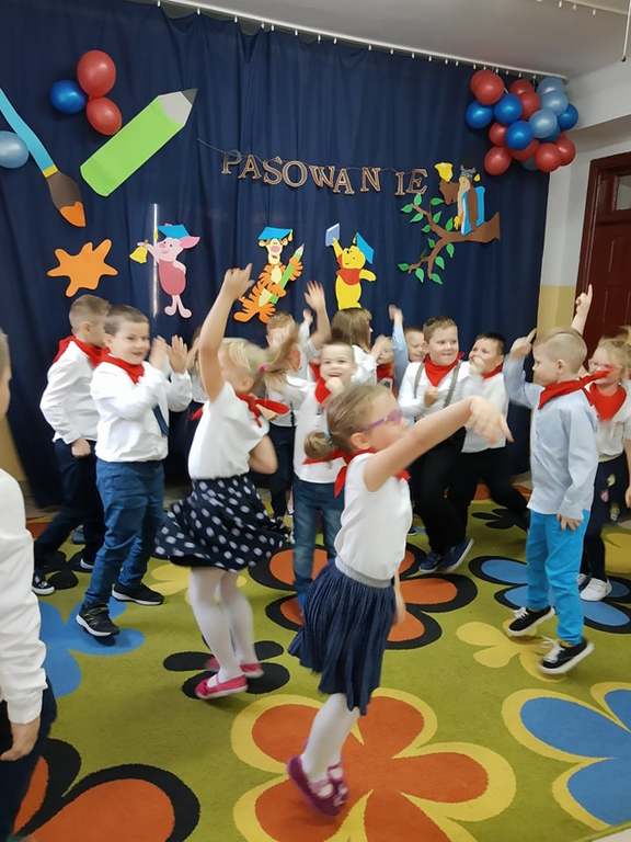 Uroczystość rozpoczęła się od zaprezentowania części artystycznej. Był to czas, w którym dzieci mogły pochwalić się swoimi zdolnościami wokalnymi, recytatorskimi oraz tanecznymi. Po części artystycznej Pan Dyrektor Leszek Wróblewski dokonał uroczystego pasowania wszystkich zgromadzonych zerówkowiczów oraz nadał im honorowy tytuł Żaków Przedszkolaków. Następnie na pamiątkę pasowania dzieci otrzymały dyplomy, winietki i rogi obfitości , po czym każde dziecko miało wykonane pamiątkowe zdjęcie. Na koniec wszyscy uczestnicy tego wyjątkowego wydarzenia zostali zaproszeni na słodki poczęstunek.