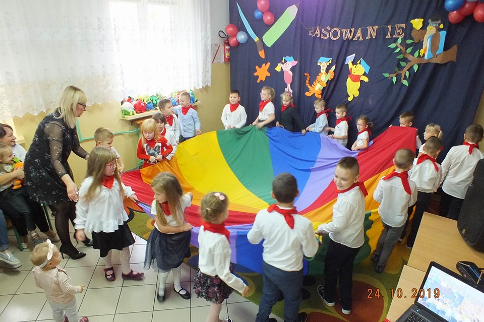 24 października 2019r., to dzień który na długo pozostanie w pamięci dzieci oraz rodziców z zerówki. W tym dniu odbyło się pasowanie na Żaka Przedszkolaka. Przed rozpoczęciem wydarzenia wszystkie dzieci odwiedził wyjątkowy gość - była nim Pani Wójt Bogumiła Dyktyńska, która przywitała wszystkich zgromadzonych oraz złożyła życzenia bohaterem tego dnia, czyli zerówkowiczom.