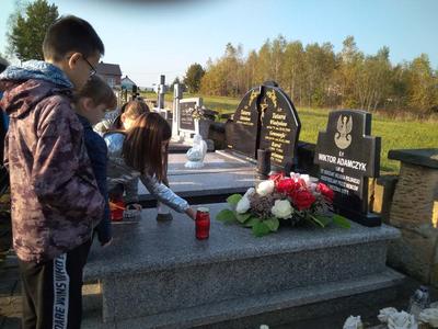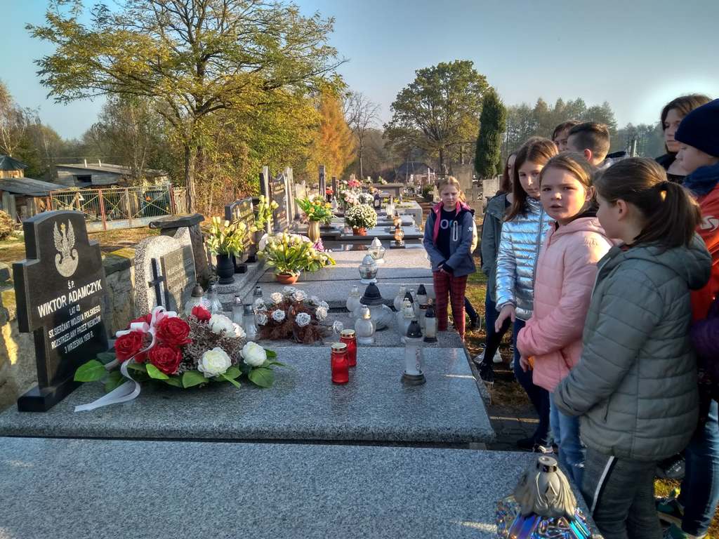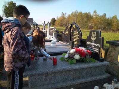 Tego dnia uczniowie zapalili znicze na mogile sierżanta Wiktora Adamczyka, przy pomniku pomodlili się również za poległych i pomordowanych w latach 1939-1956 mieszkańców gminy Wielgomłyny.