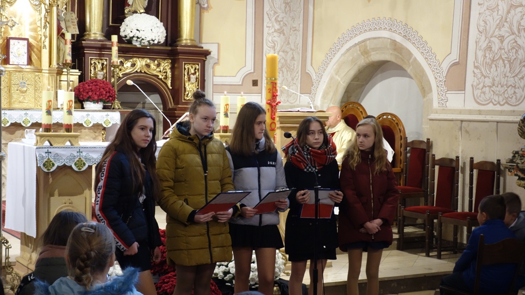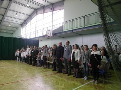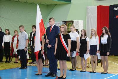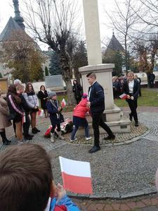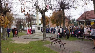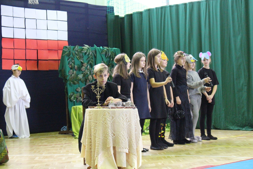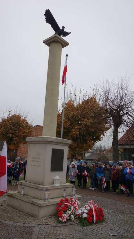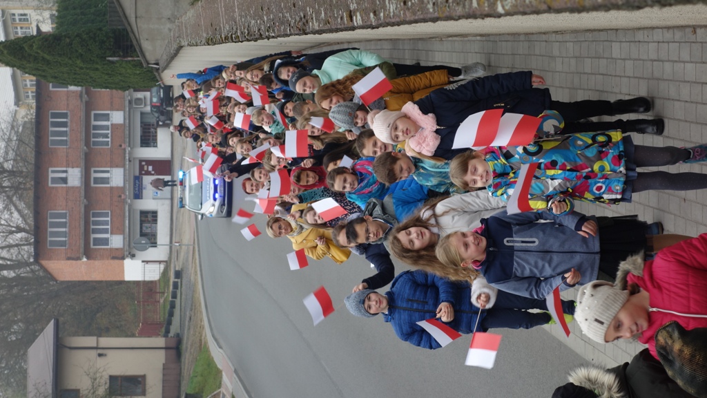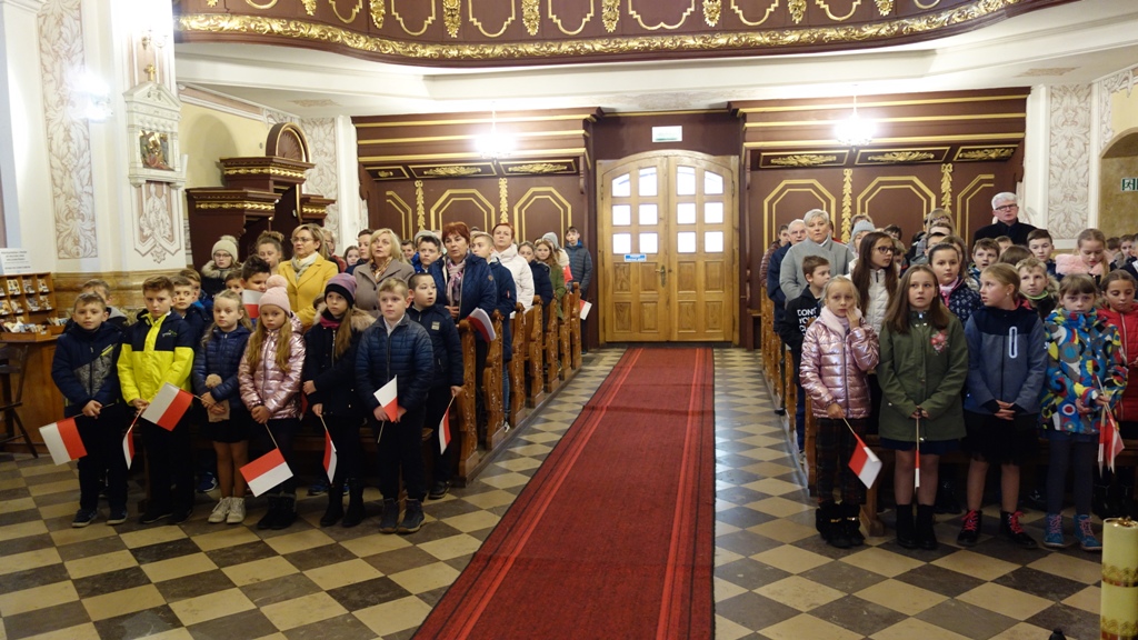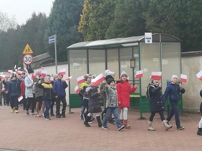 Ze szkoły wszyscy nauczyciele i uczniowie niosący biało-czerwone flagi udali się Marszem dla Niepodległej do kościoła parafialnego, gdzie odbyła się Msza św. w intencji naszej Ojczyzny, poległych i pomordowanych w walce o niepodległość oraz za mieszkańców naszej gminy.