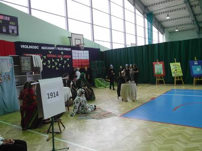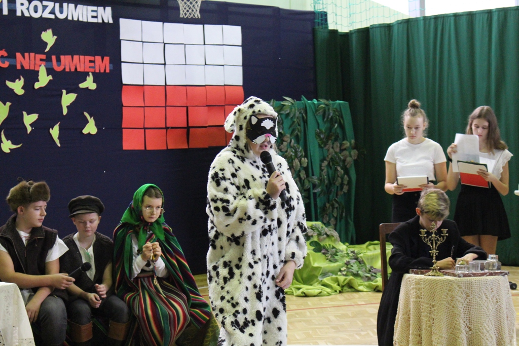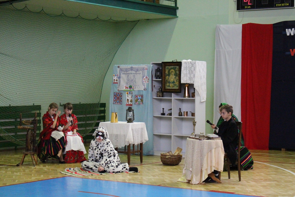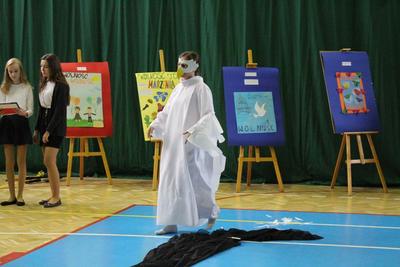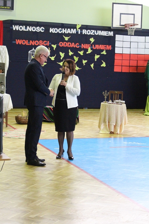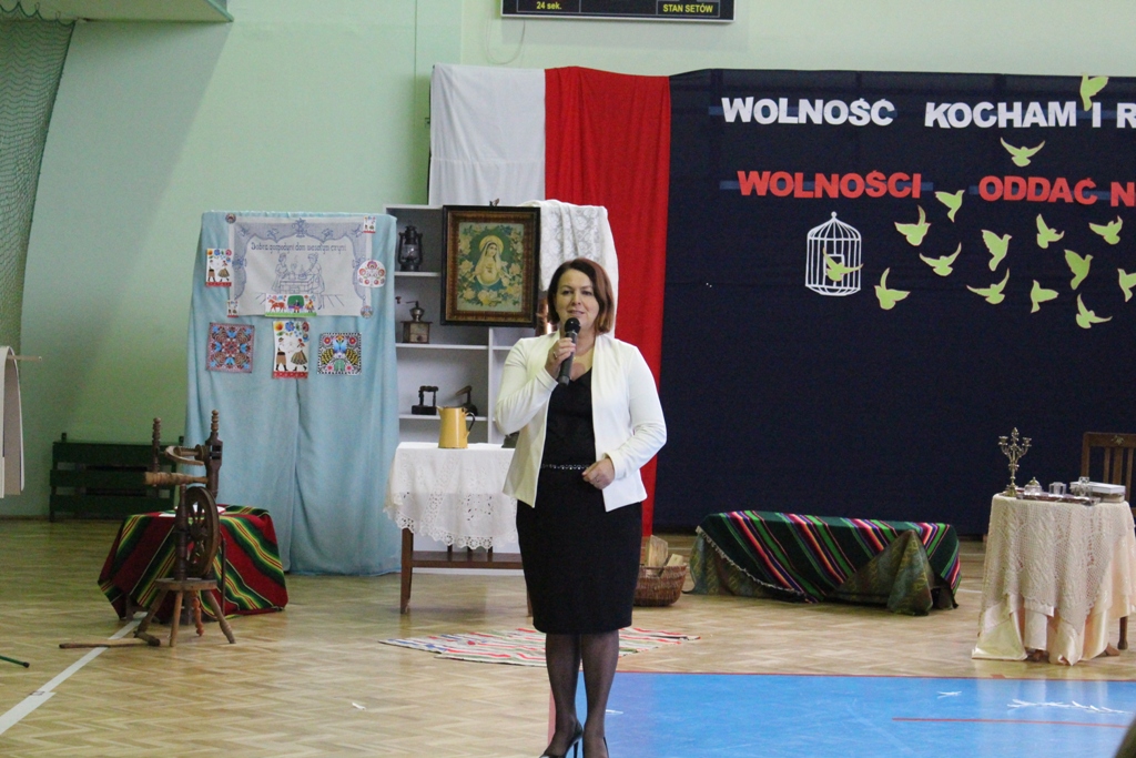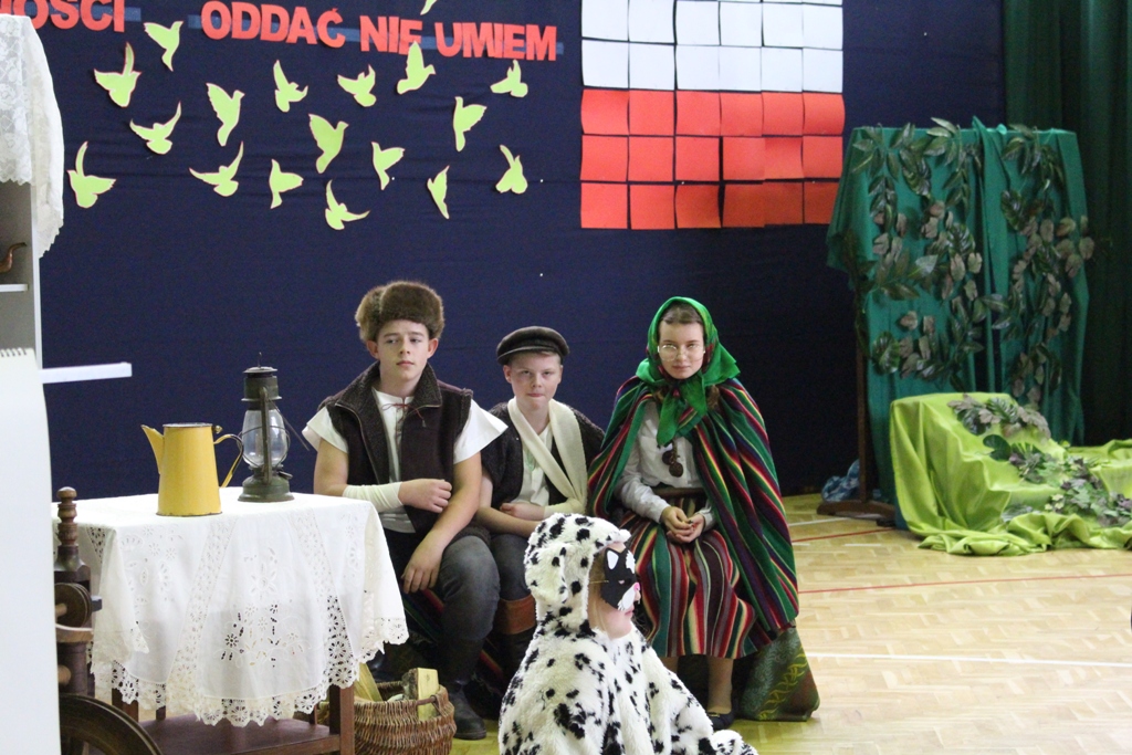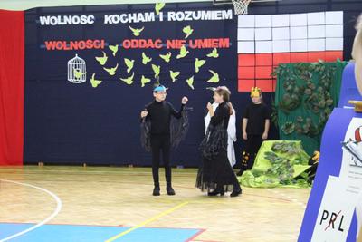 Pod kierunkiem p. Anny Nowak oraz p. Katarzyny Bień uczniowie klasy V przedstawili inscenizację pt.: ”Wolność”, a uczniowie klasy VII przedstawili spektakl pt.: ”Biały Orzeł”. Na koniec apelu, miało miejsce wspólne odśpiewanie hymnu państwowego. Wszyscy uczestnicy spotkania mieli możliwość obejrzenia wystawy prac plastycznych pt.: „Czym jest dla mnie wolność”, które wykonali uczniowie z klas V-VIII.